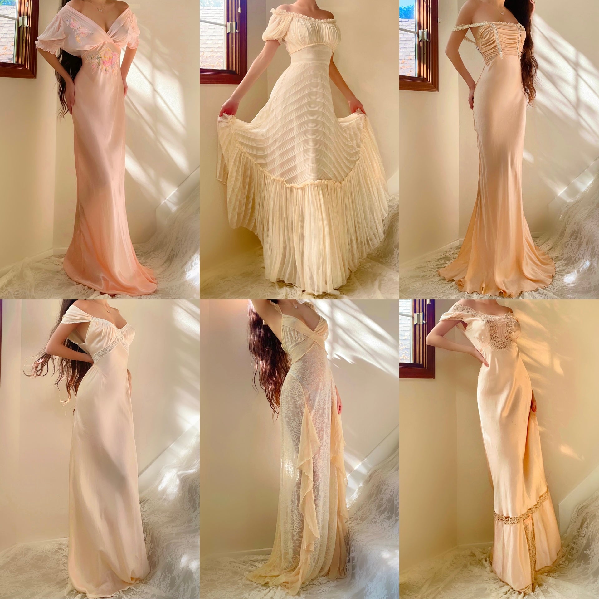 1930s antique soft peach/apricot romantic silk bias cut lingerie gown