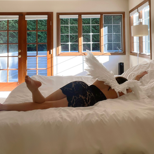 Pure White & Black Contrast Lace Off the Shoulder Angel Sleeve Lingerie Midi Dress (Pre-Order)