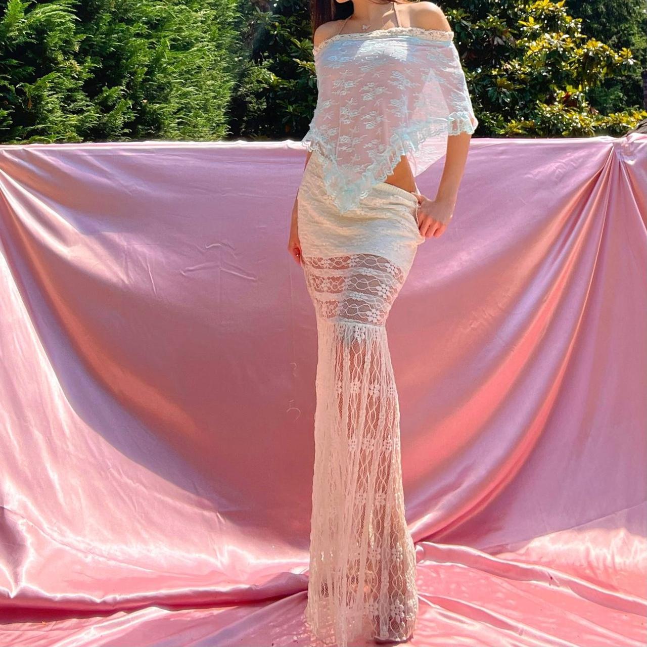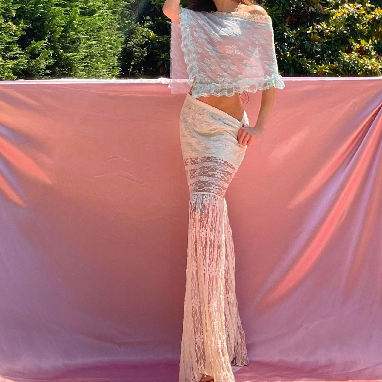 - Crafted with high-quality lace, light pink raw-hemmed silk, and a crotchet trim.