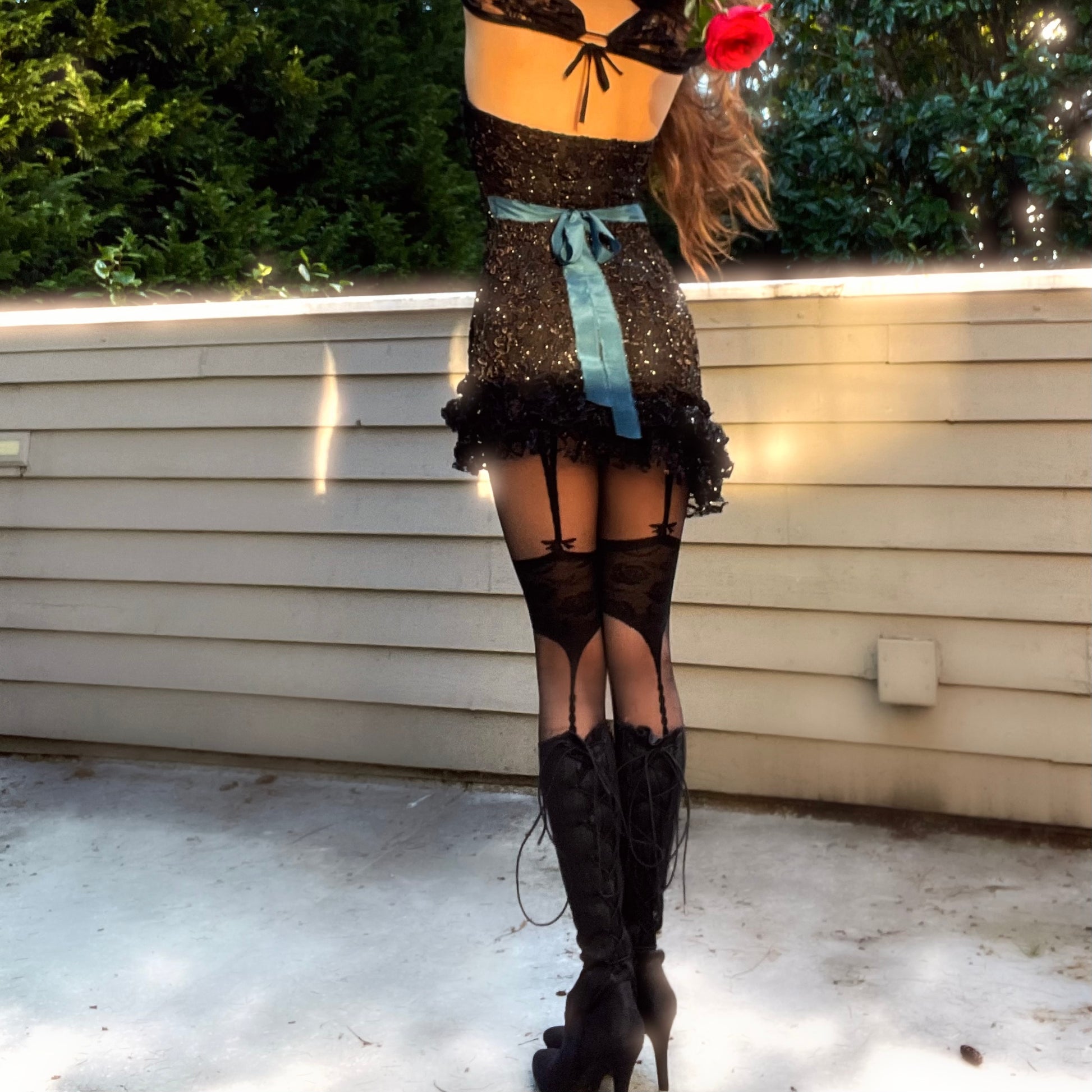 Handcrafted Black Sparkly Lace Ruffle Mini Dress. One-of-one. Made by 𝒱.