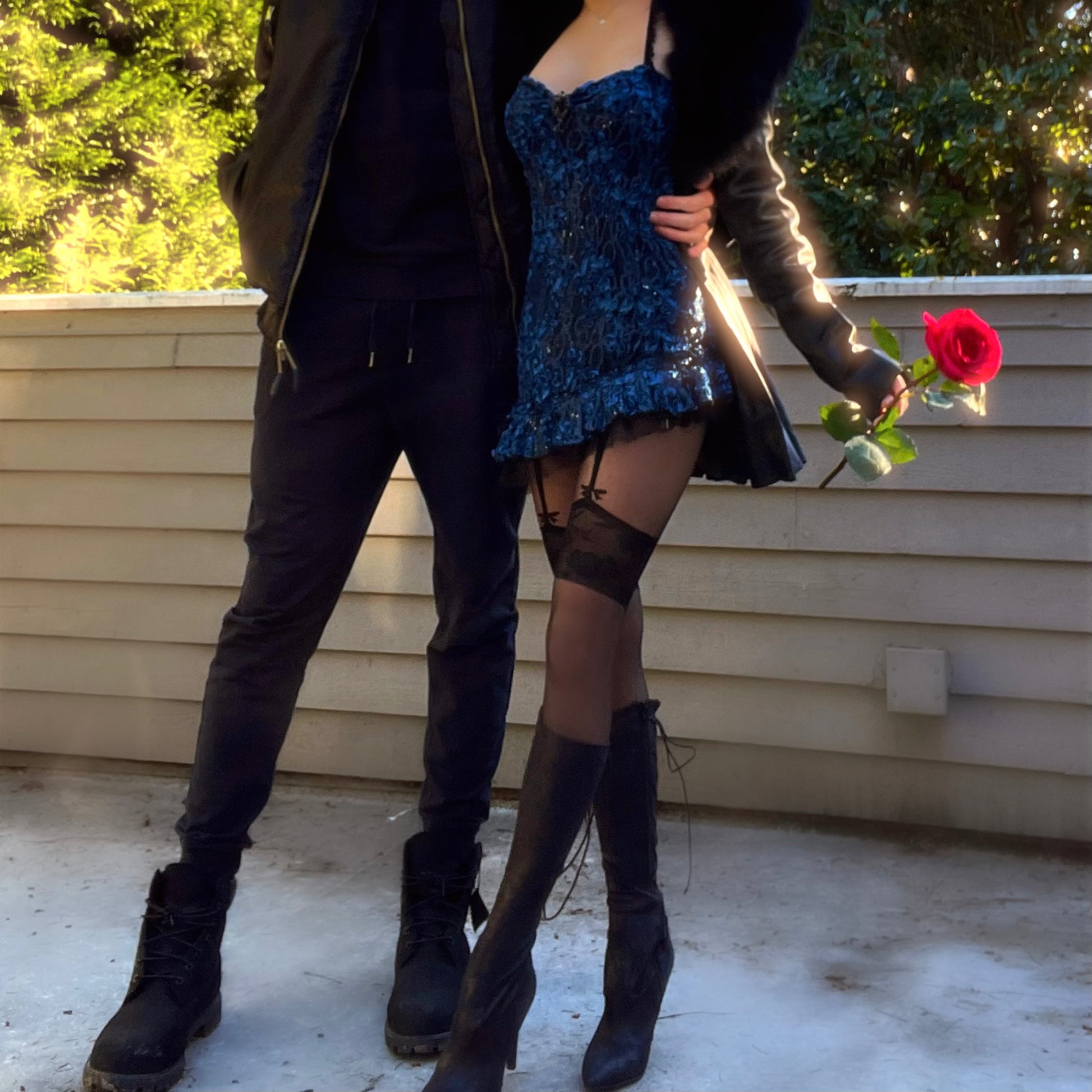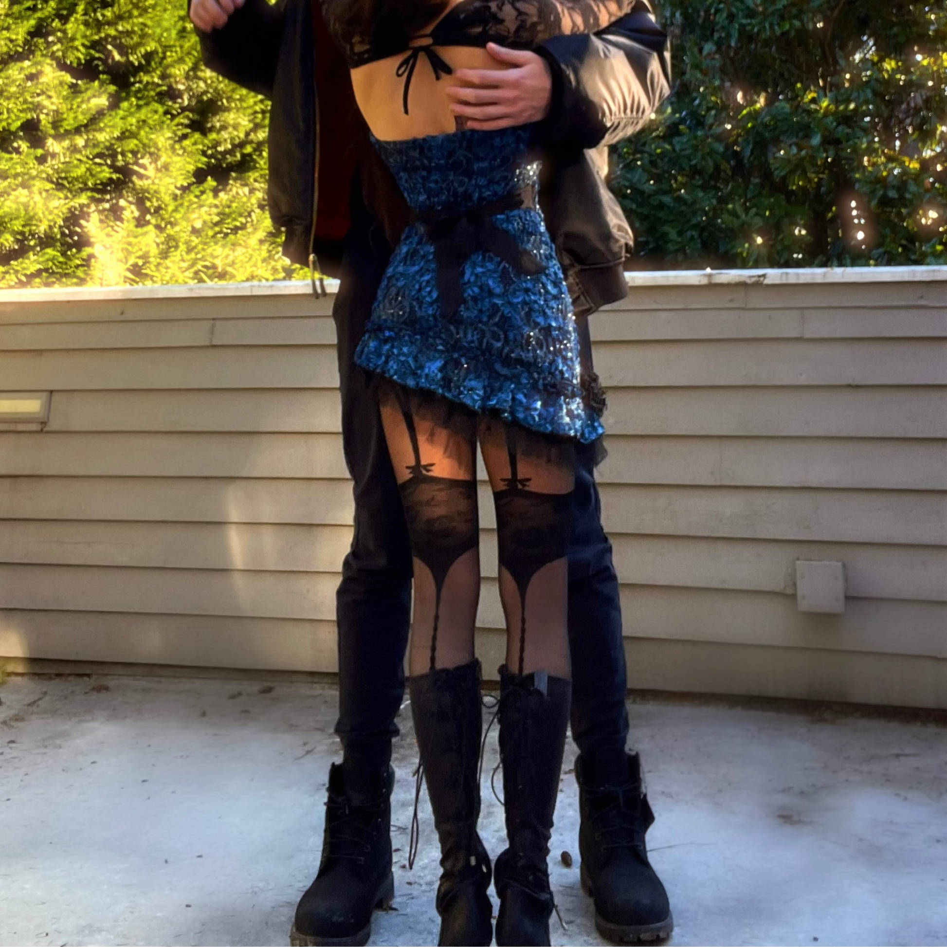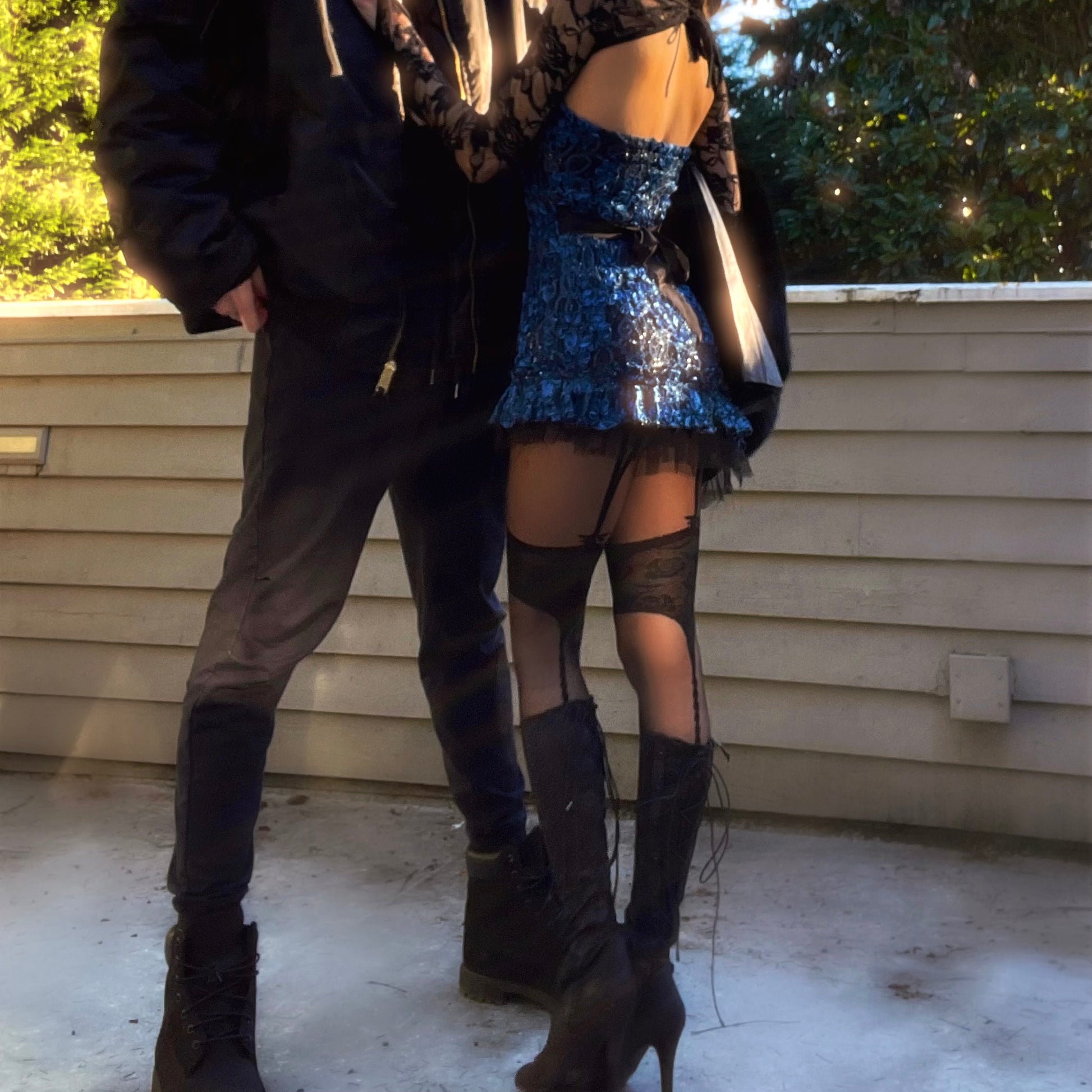 Handcrafted Blue/Black Sparkly Lace Ruffle Mini Dress. One-of-one. Made by 𝒱.