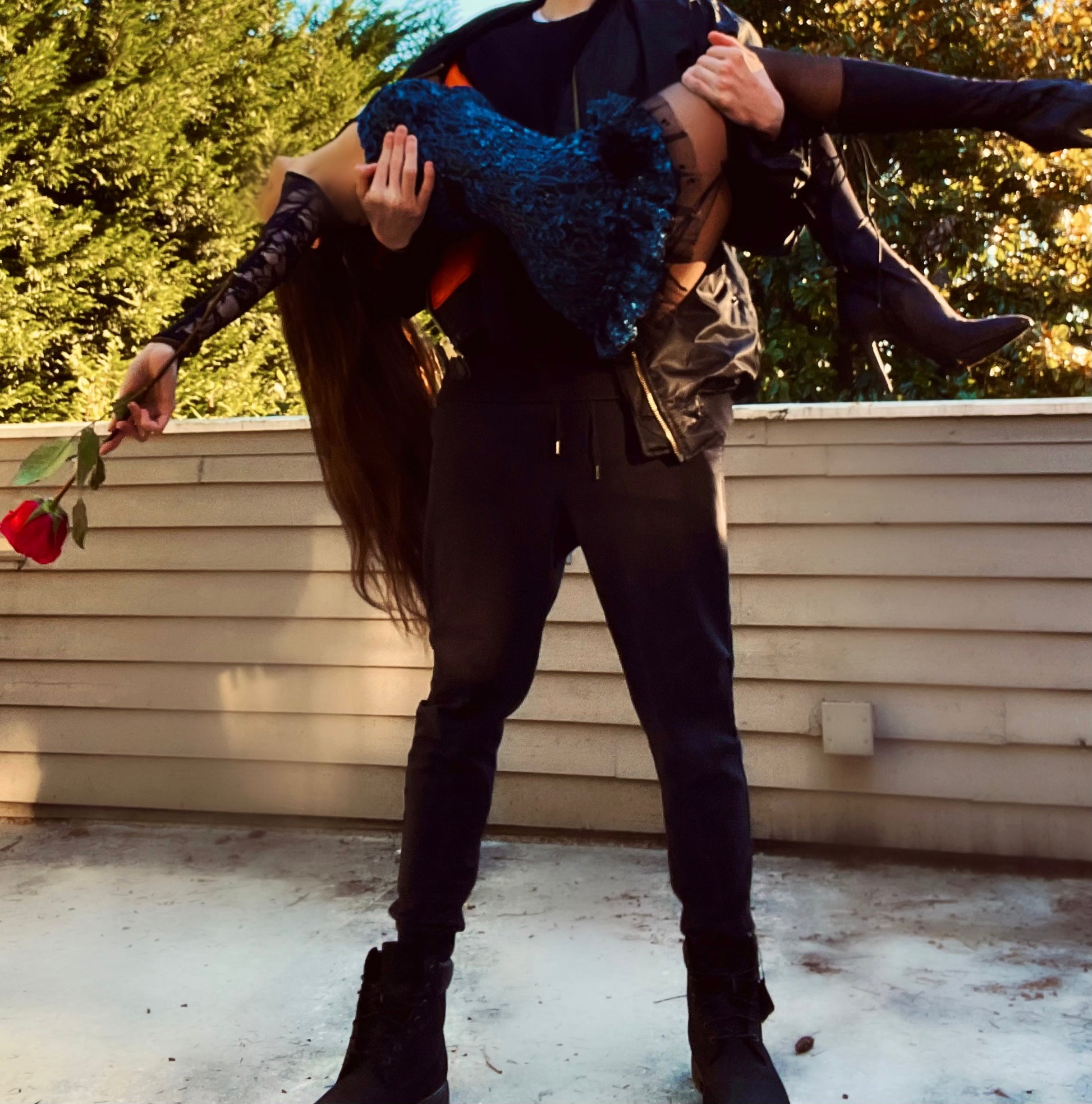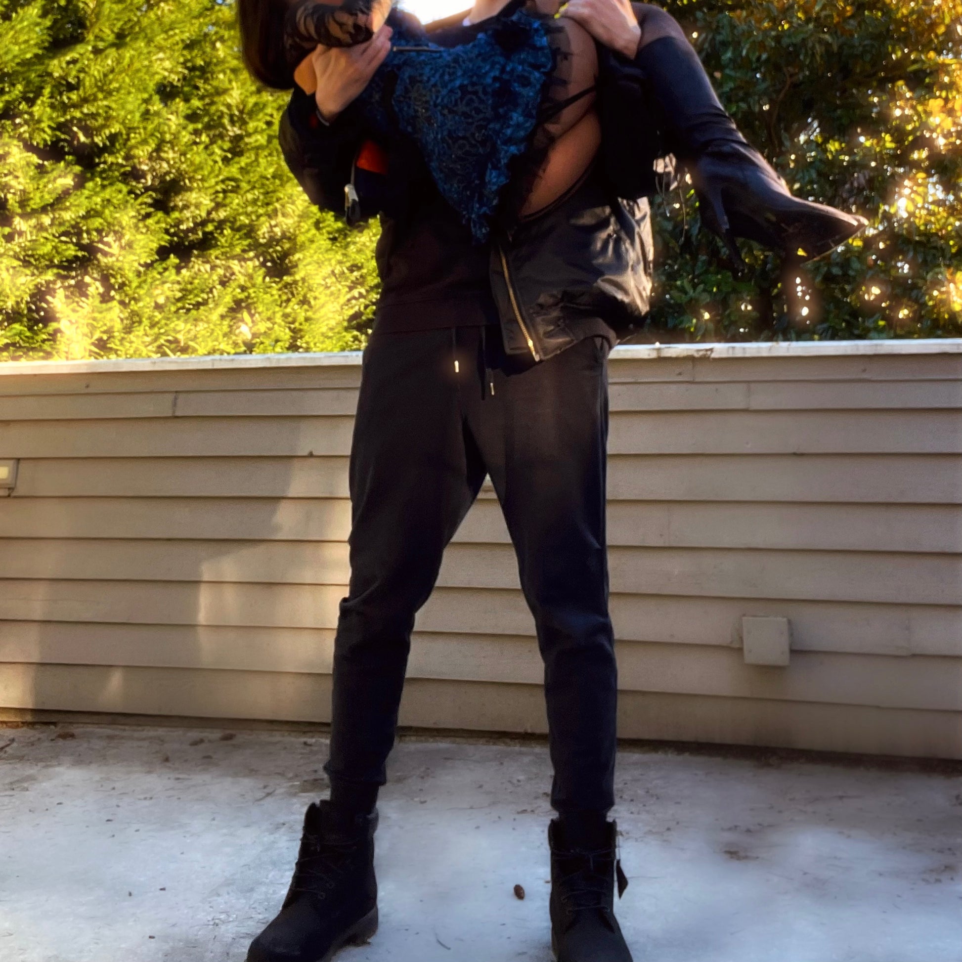 • Deep blue embroidered sparkly lace with a black soft rayon lining underneat
