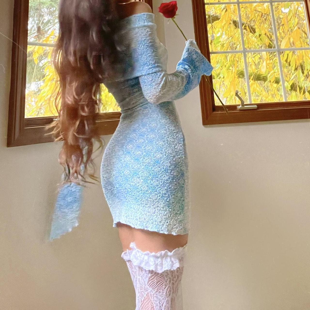 - Made with a high-quality embroidered knit ombre fabric.ย Tiny bit see-through but not too noticeable with nude panties.