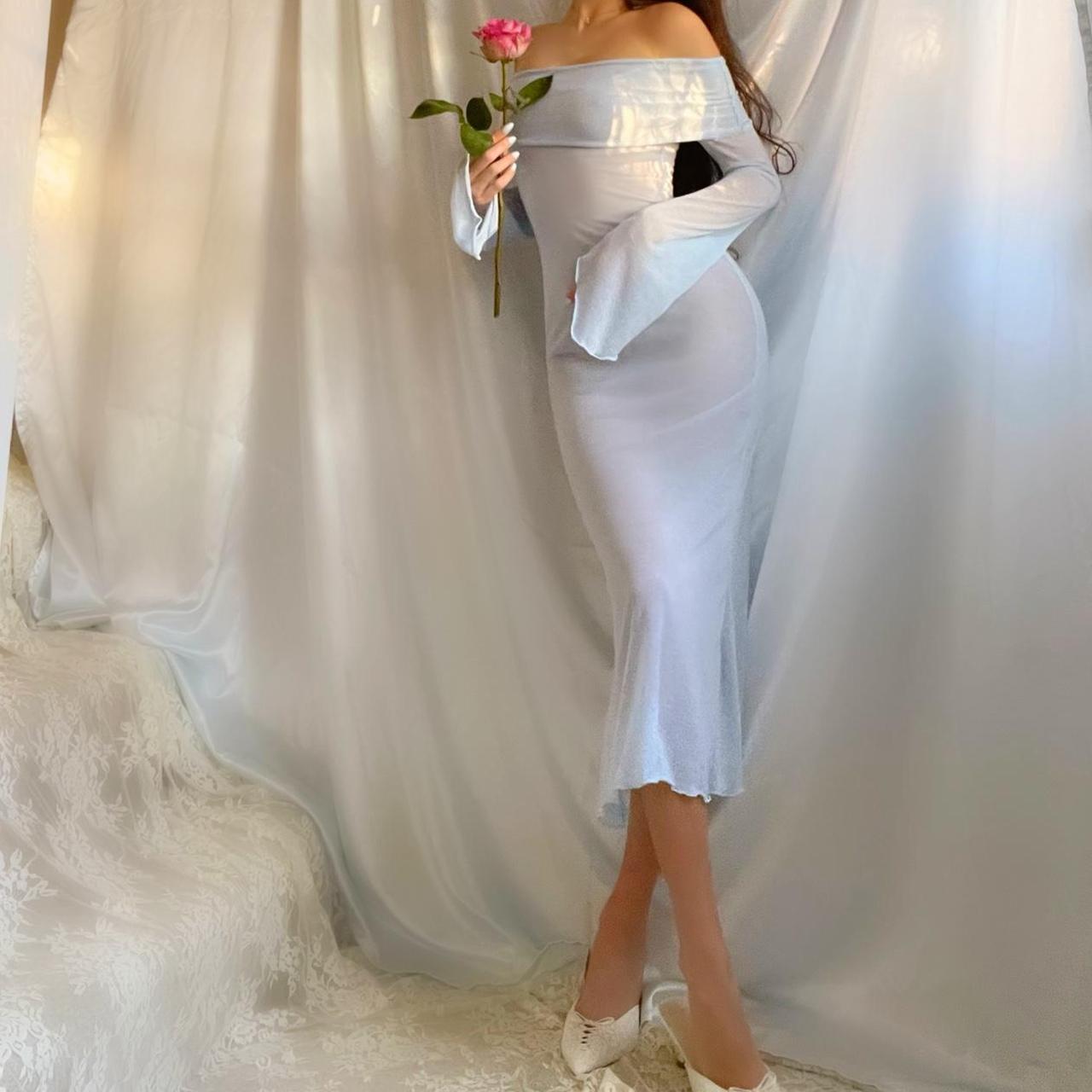 Aphrodite’s Angel Baby Blue Off the Shoulder Lingerie Midi Dress