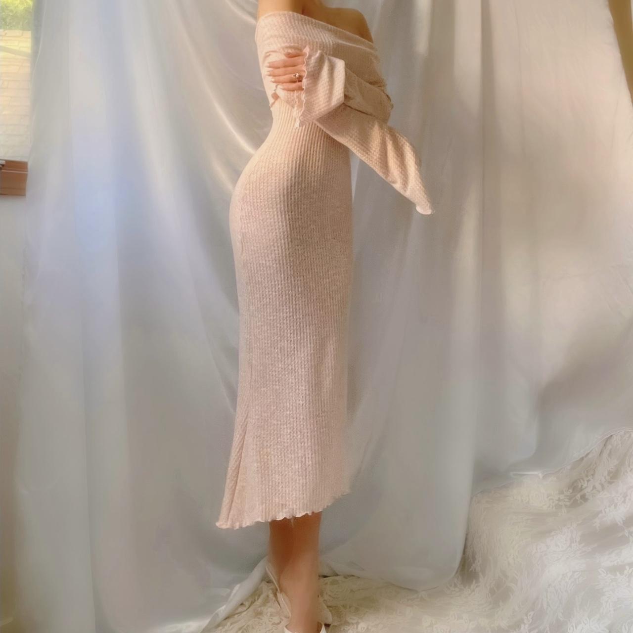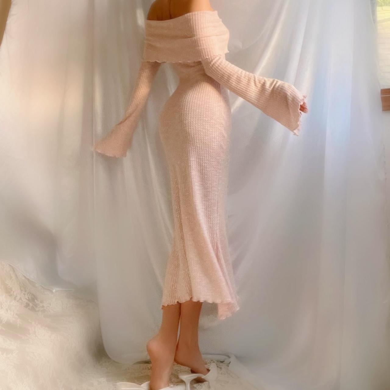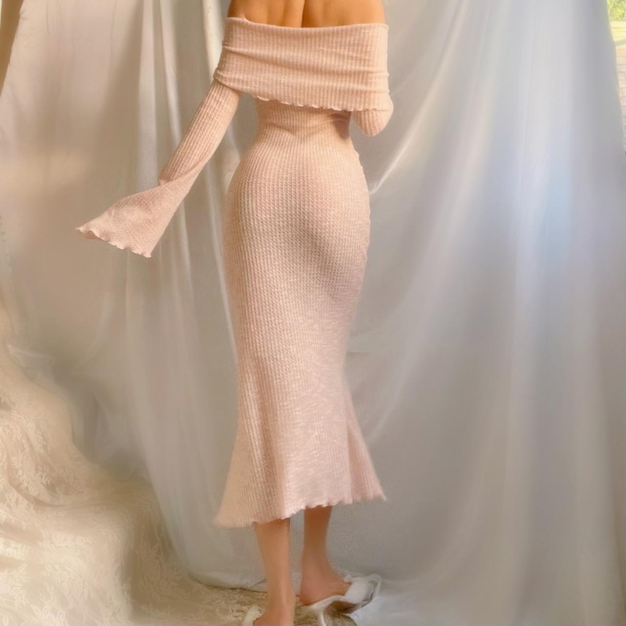 Aphrodite’s Angel Baby Pink Off the Shoulder Mermaid Midi Dress