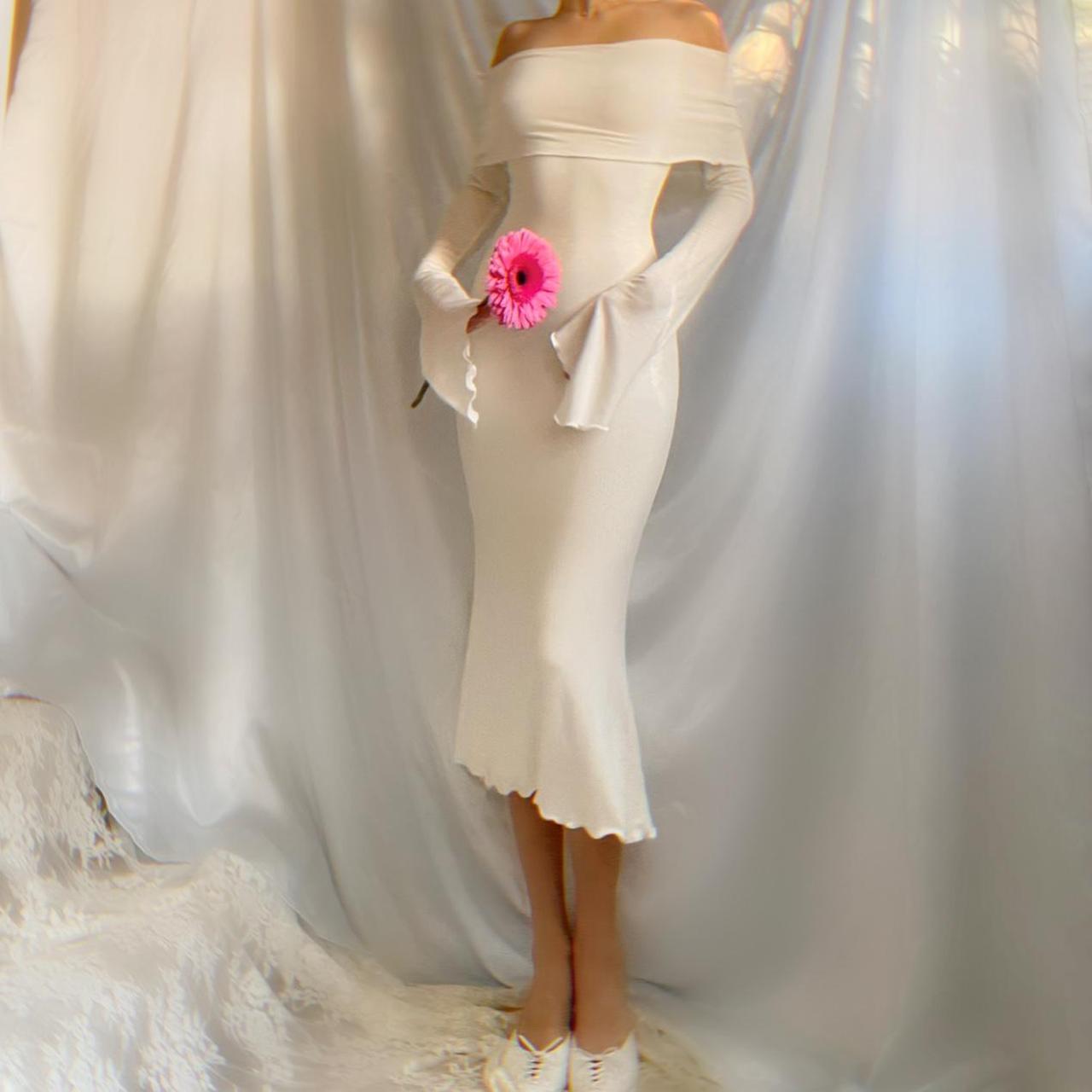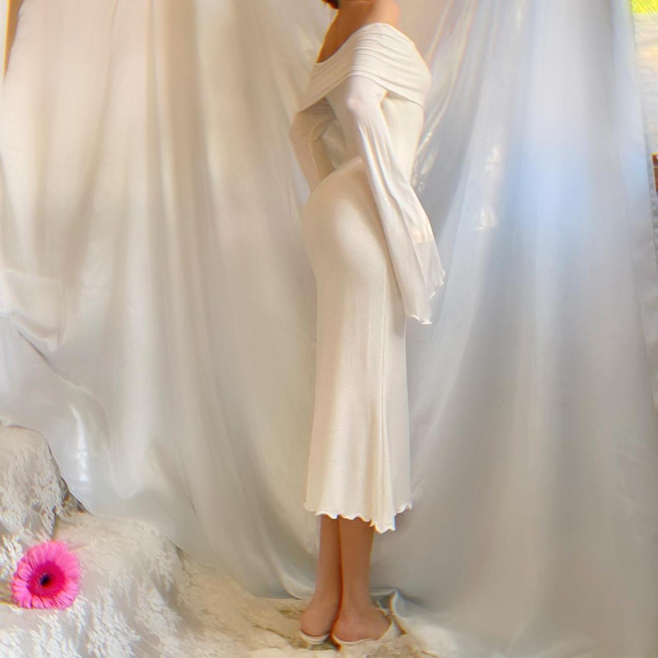 Size XS/S. One-of-one. Made from a super soft white viscose stretch fabric. Double lined.