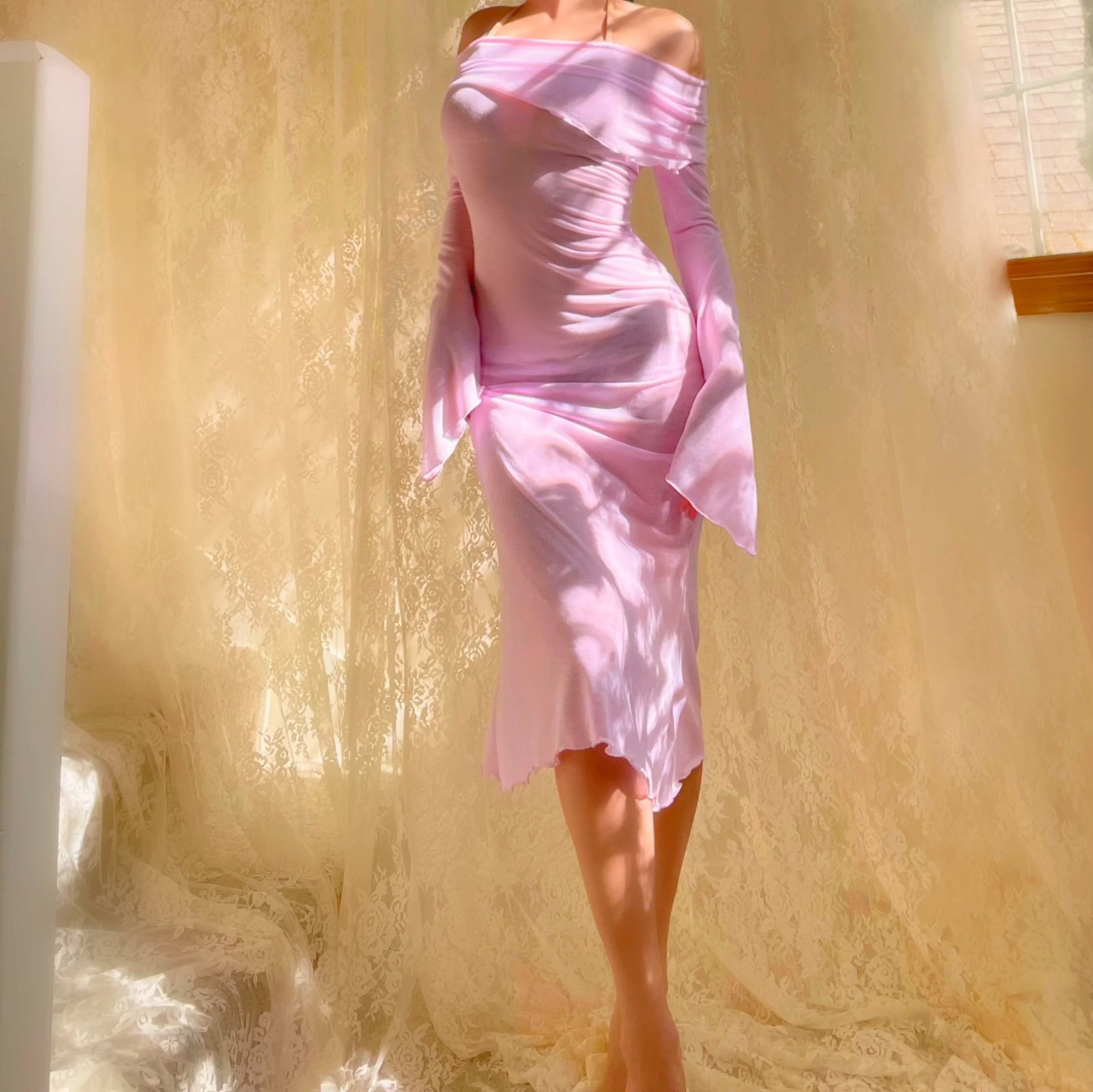 Aphrodite's Angel Baby Pink/Lilac Off the Shoulder Mermaid Midi Dress
