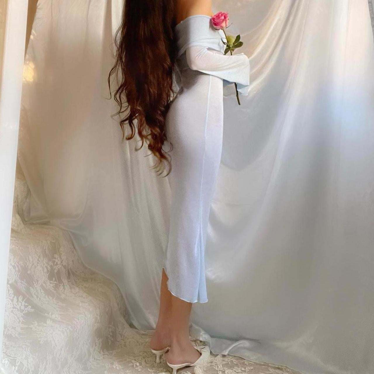 Please note that the fabric as seen in the sold sample piece in the pics is no longer available, but I'll be using a very similar and higher quality stretchy baby blue sea island cotton knit that isn't see through(see last pic)!