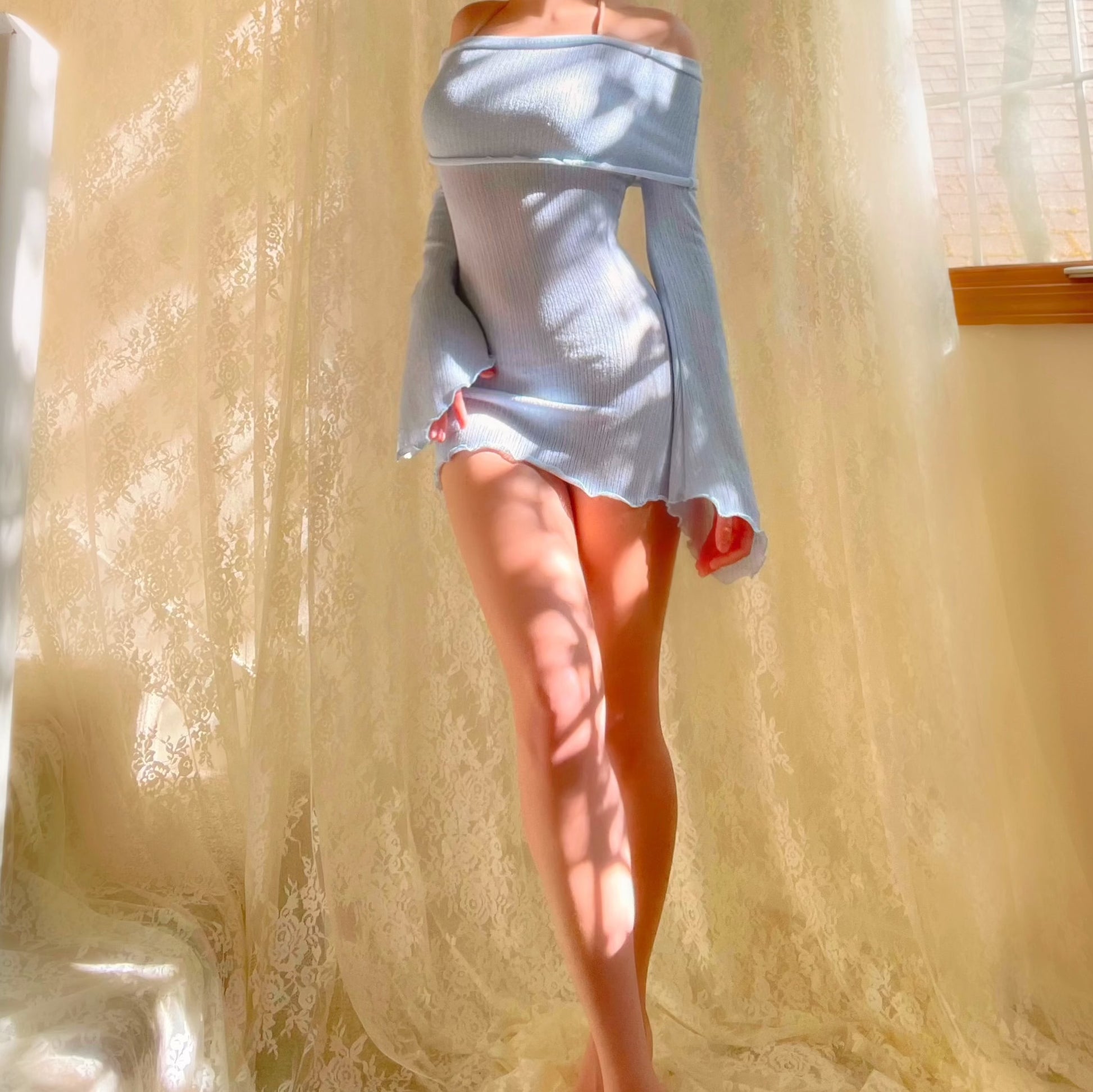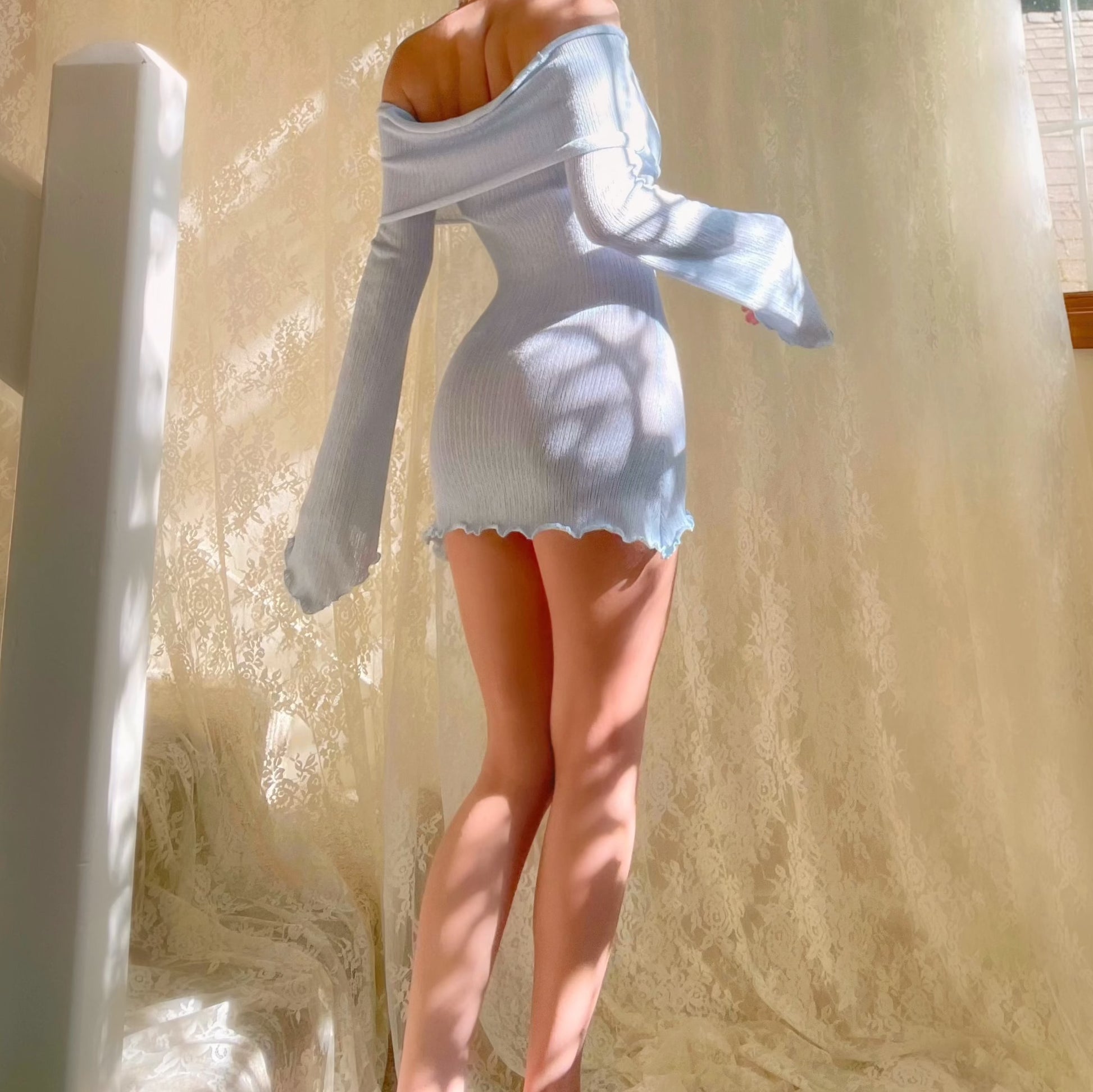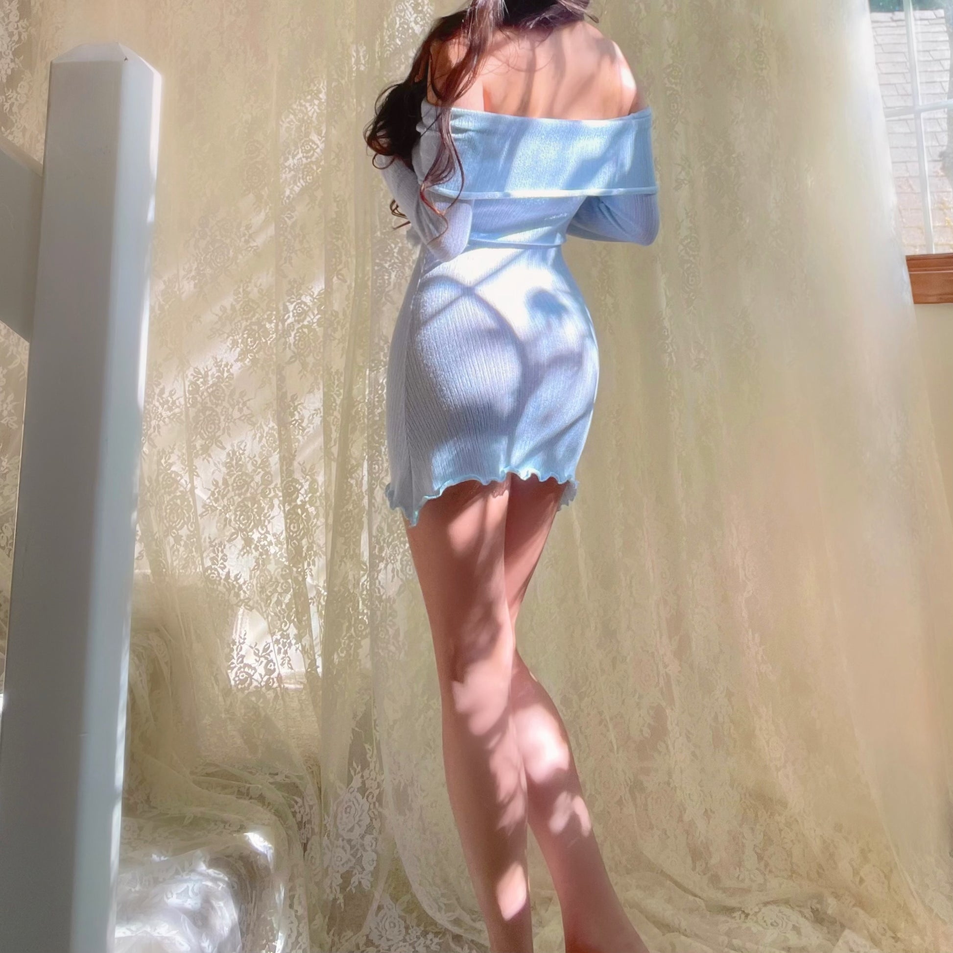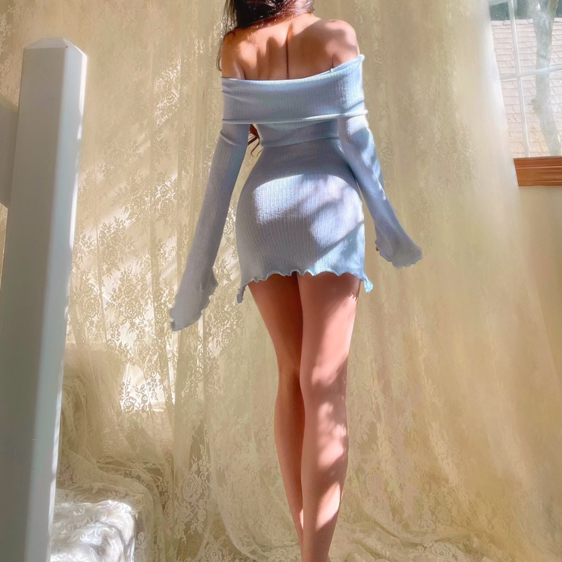Made with a high-quality baby blue ribbed stretchy fabric. Perfect for the beach/vacation! Seen styled on model with a bikini underneath.