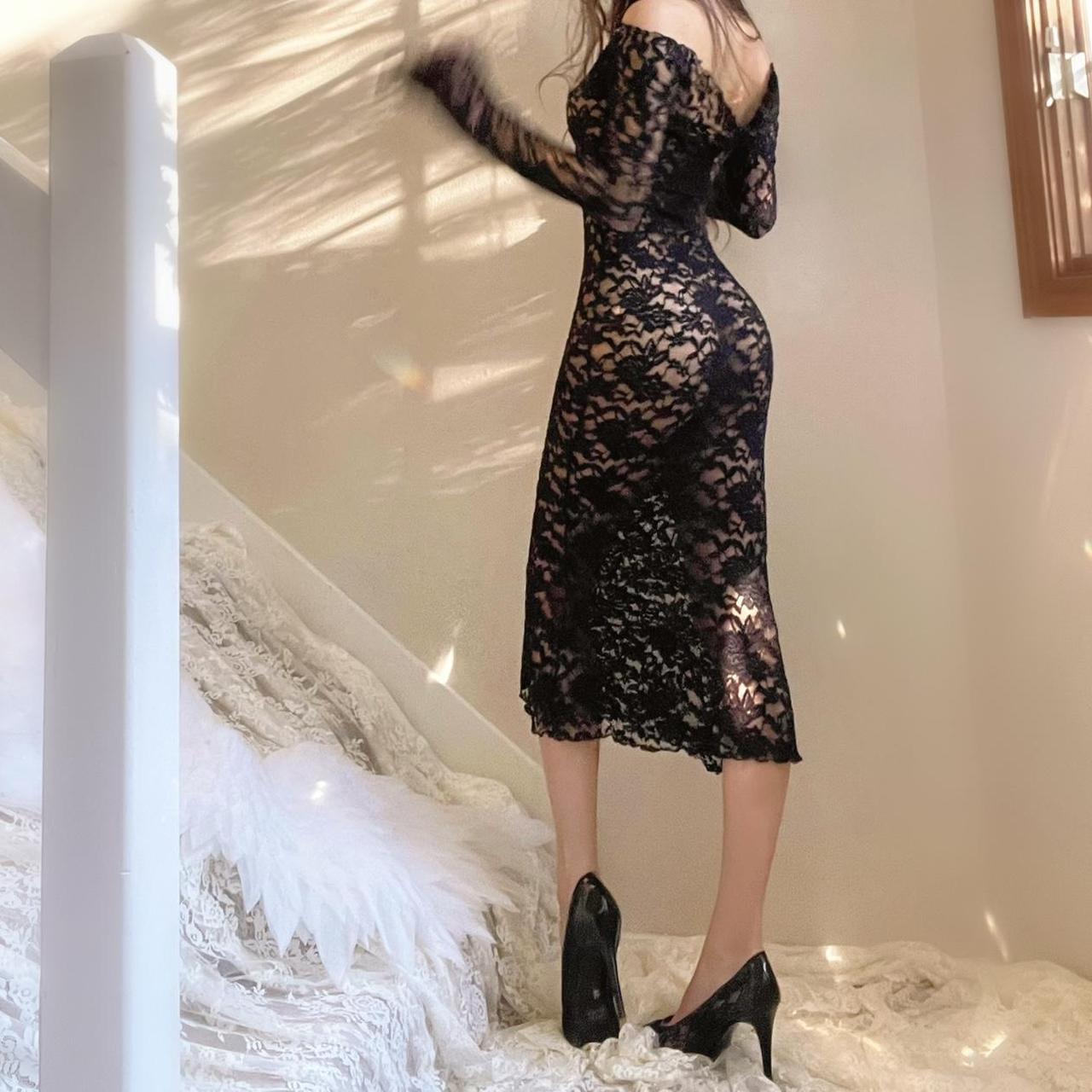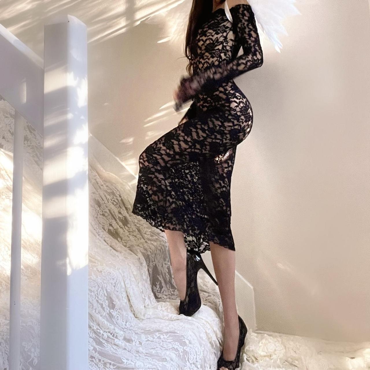 Black Velvet Lace Off the Shoulder Angel Sleeve Lingerie Midi Dress (Pre-Order)🖤🪽