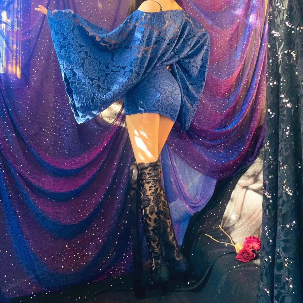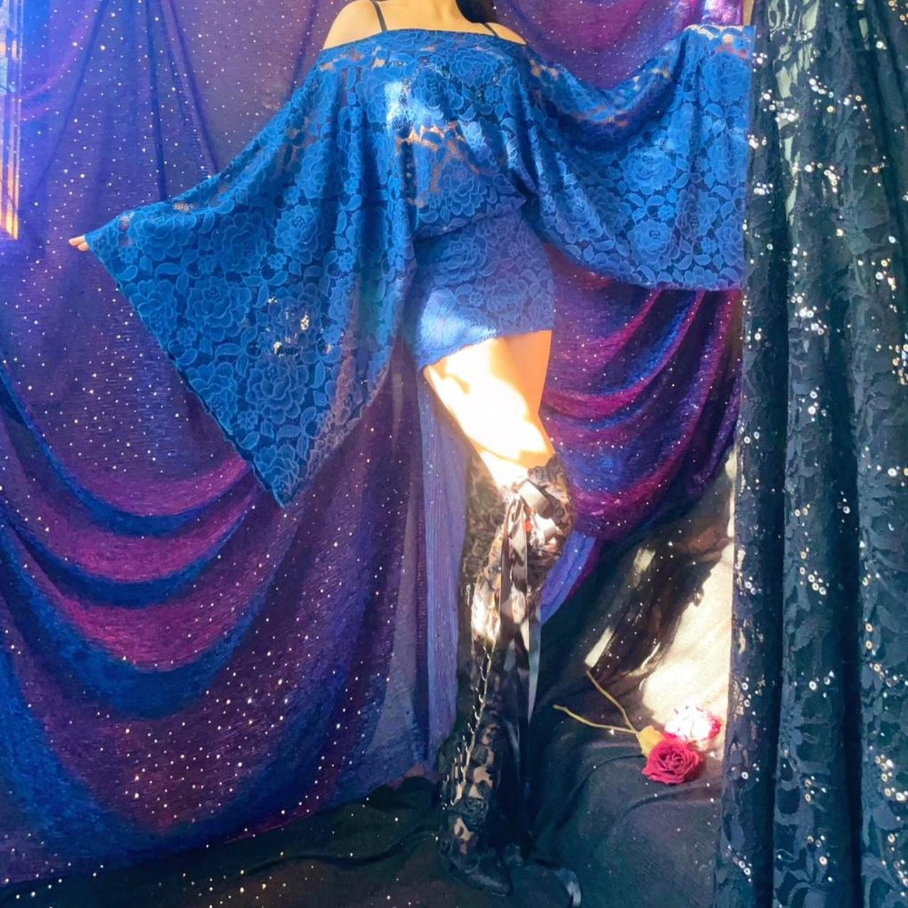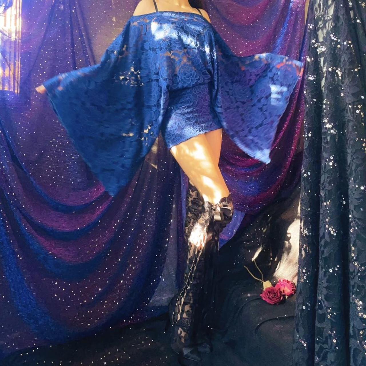 Handcrafted Deep Blue Lace Draped Batwing Mini Dress💙🦋
