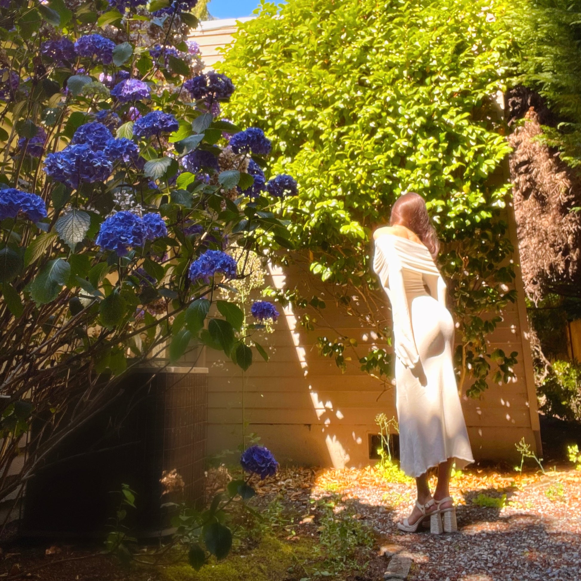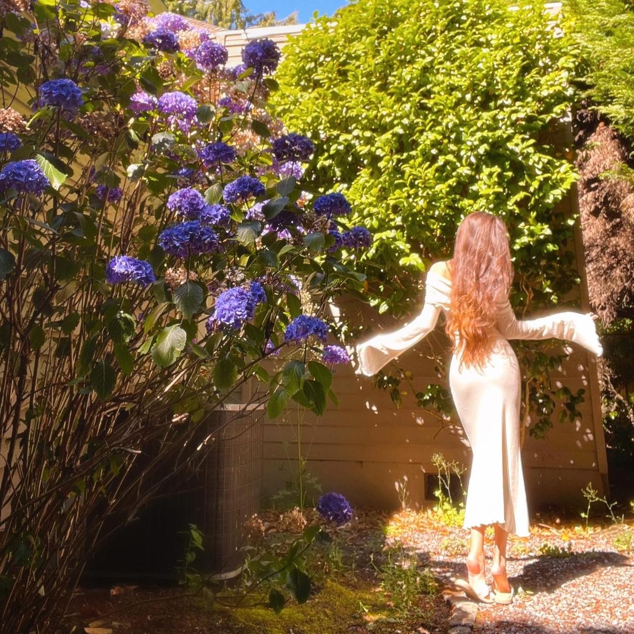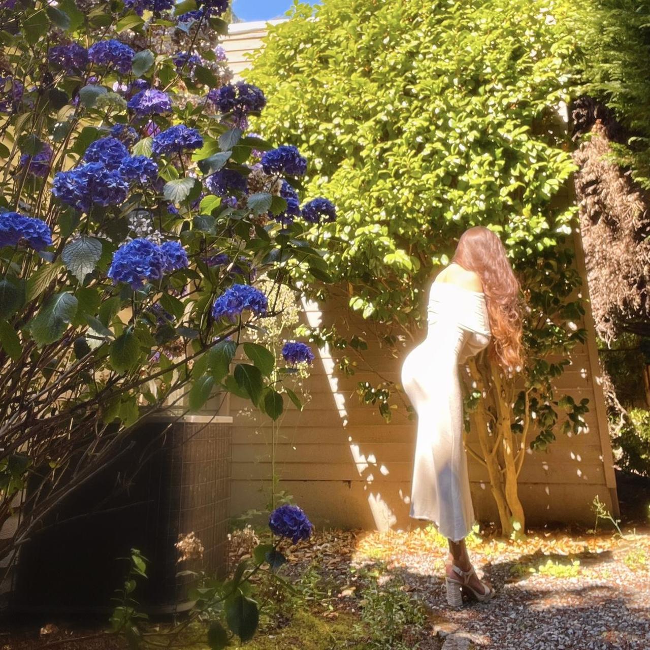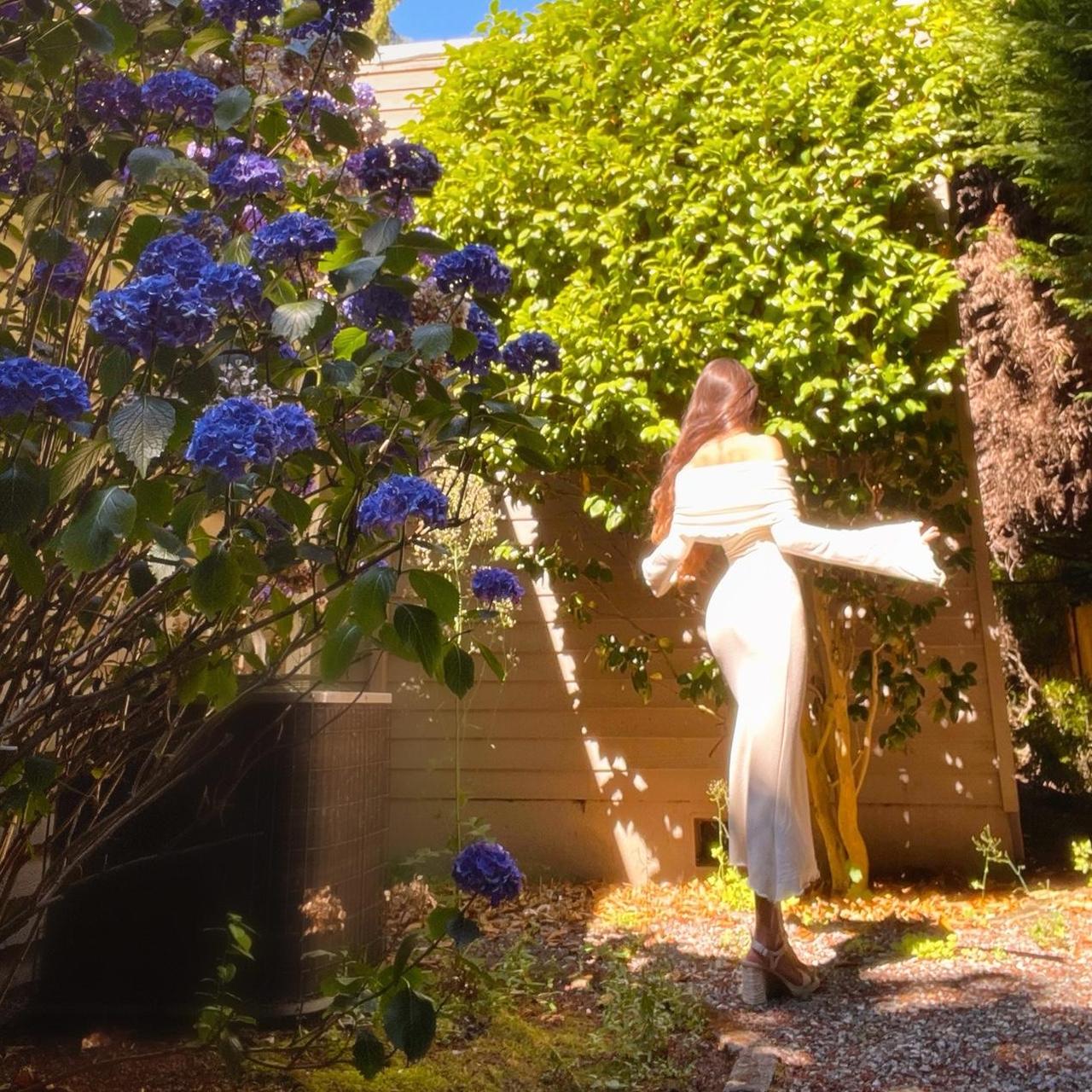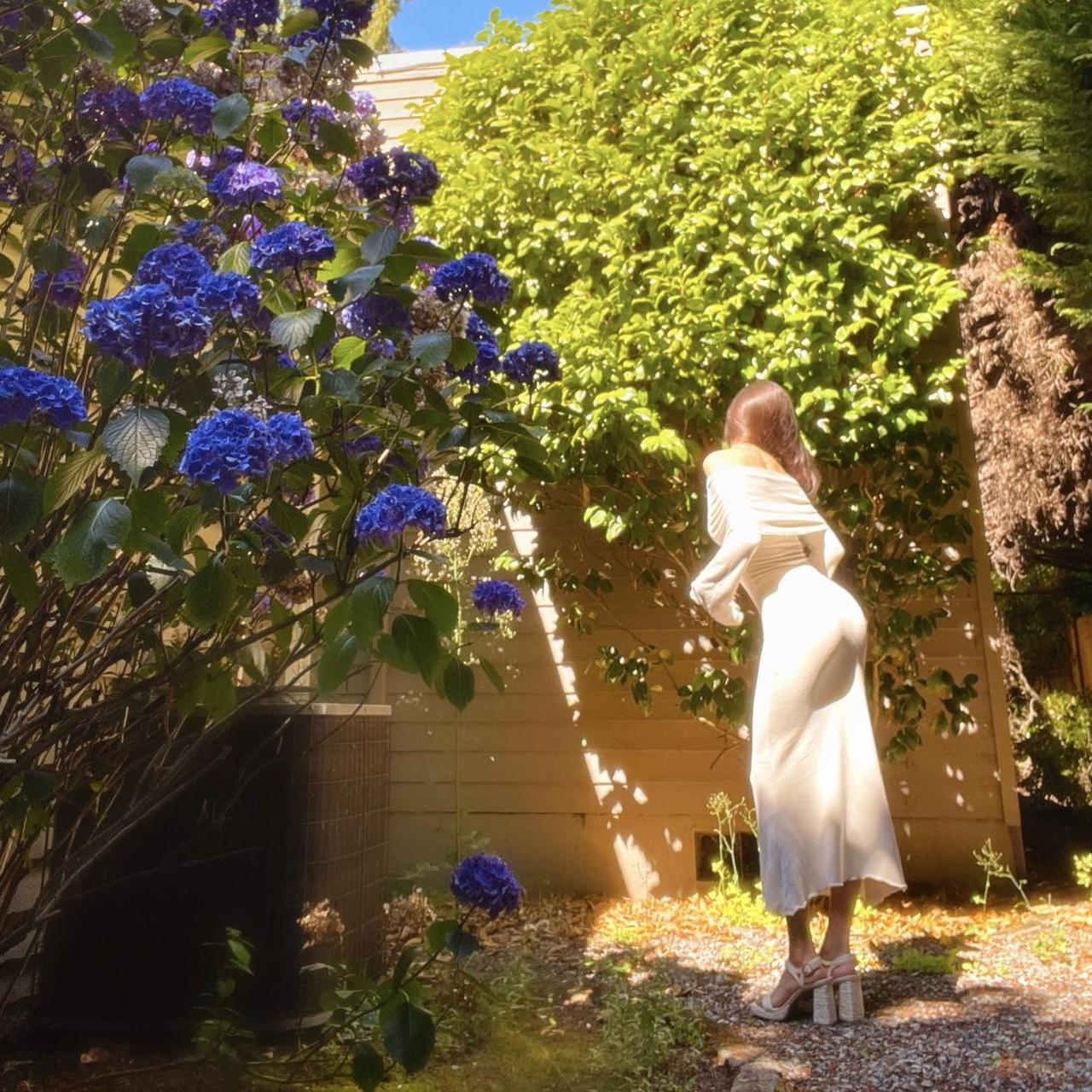 Please note that the first pics were taken under direct sun so the color appeared more white. The true color is more of an ivory/light beige. See the last pic without sun for the most accurate color representation. If youβd like this dress in a true white, message me!π€