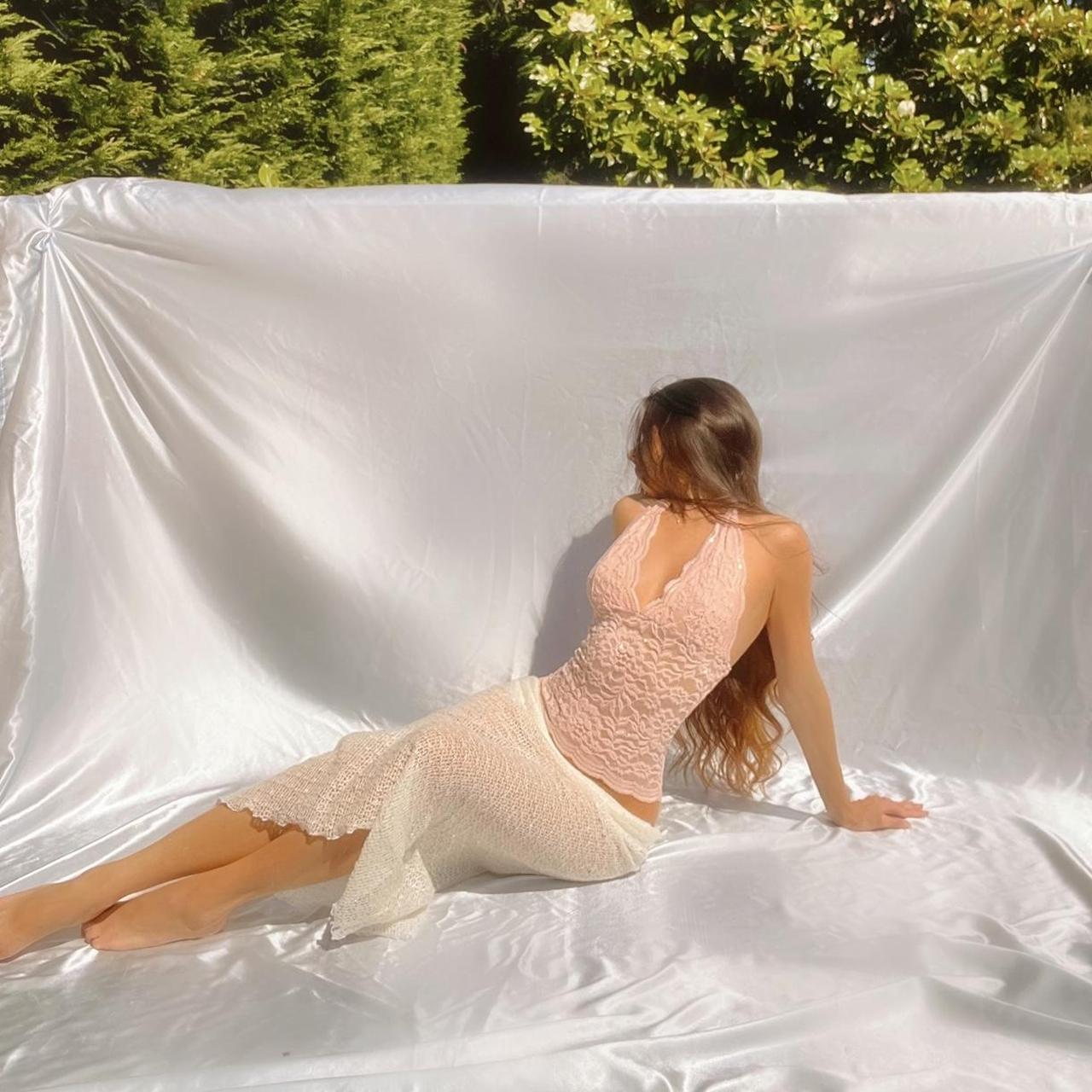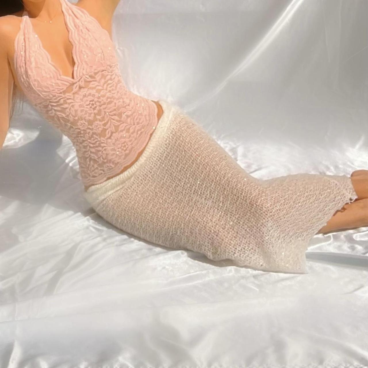 Handcrafted Baby Pink Sparkly Lace Halter Top