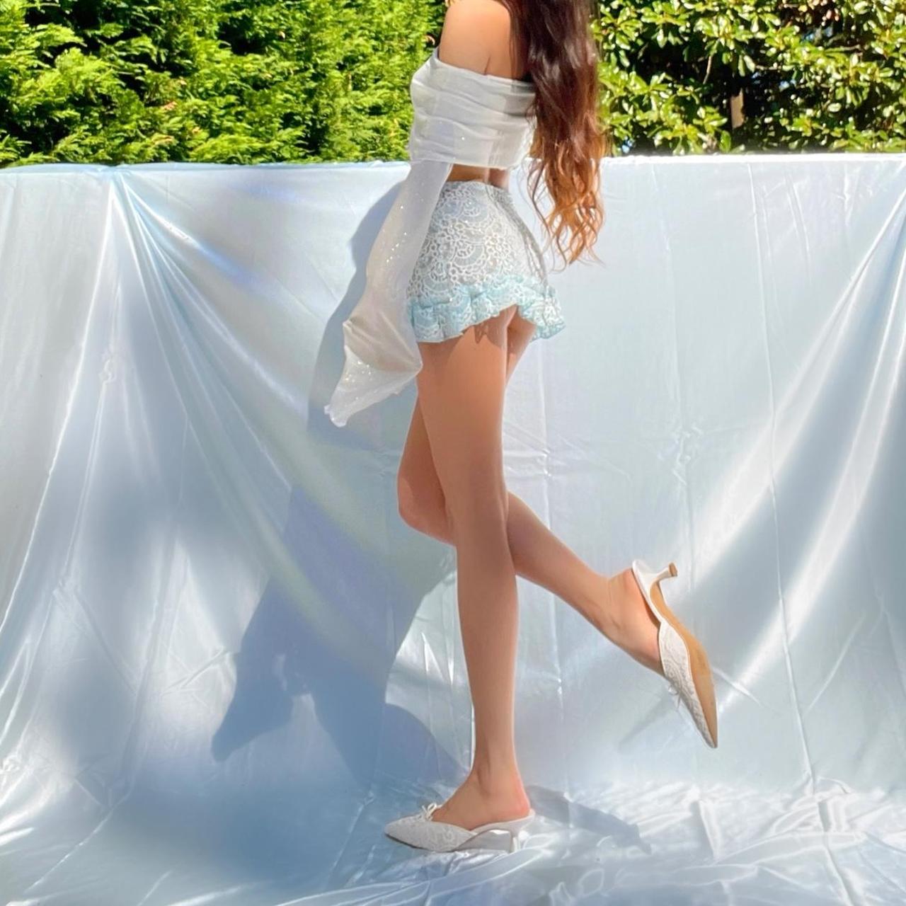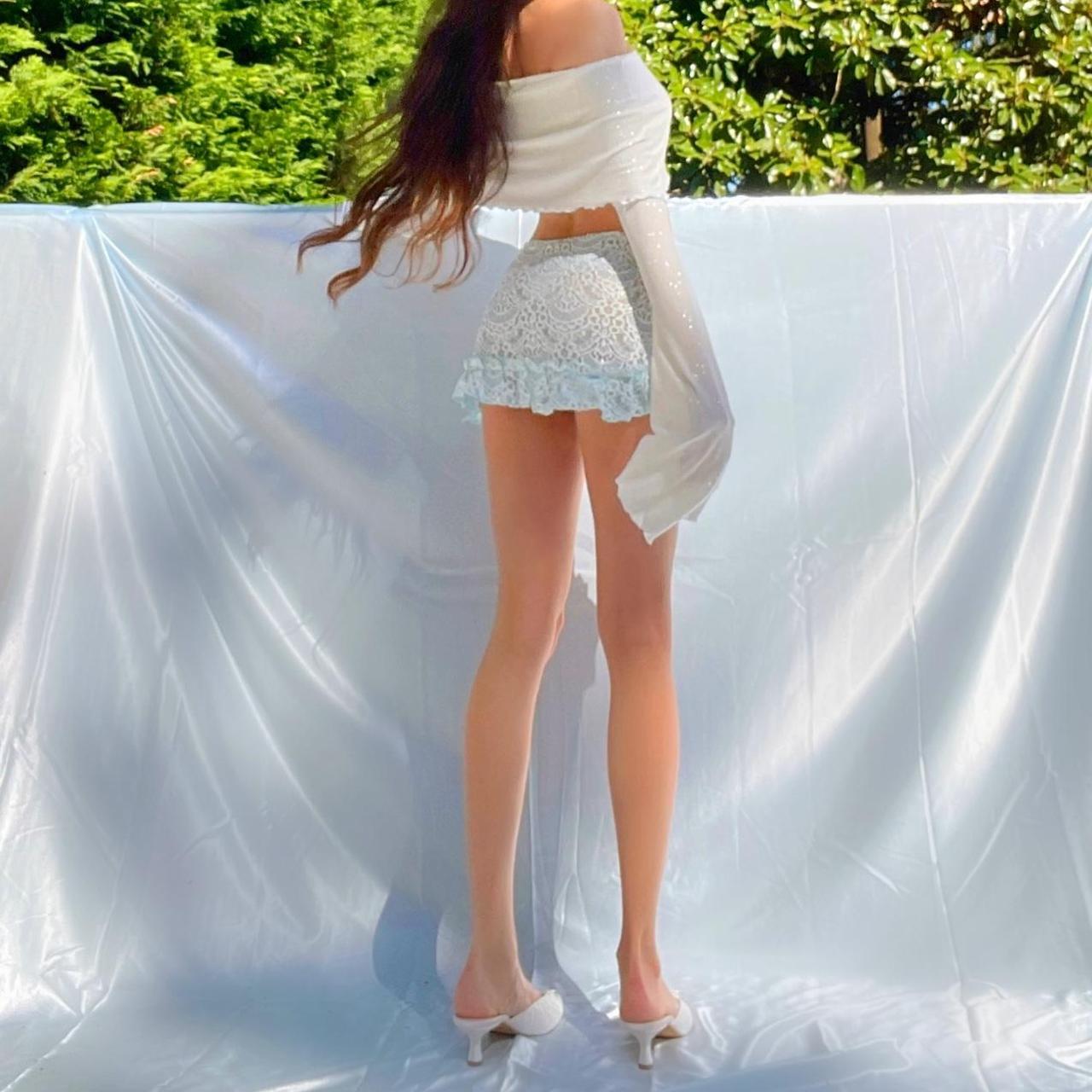 Handcrafted Ice Blue Sparkly Lace Ruffle Mermaid Mini Skirt (Made-to-Order)