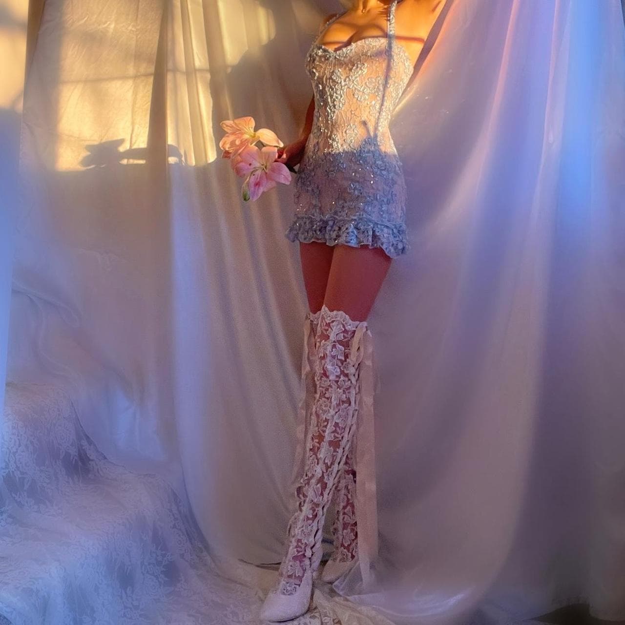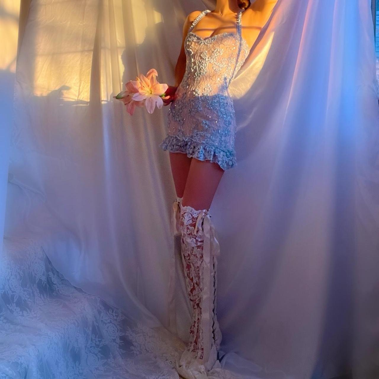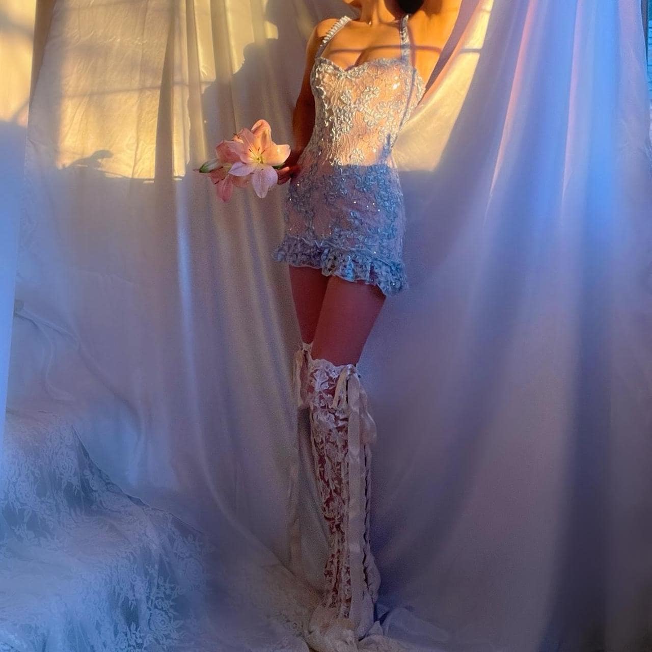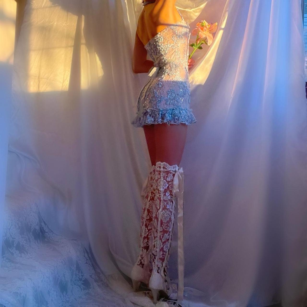 Made with a high quality sparkly embroidered lace with a soft baby pink viscose lining underneath! Creates such a pretty color combo <3
