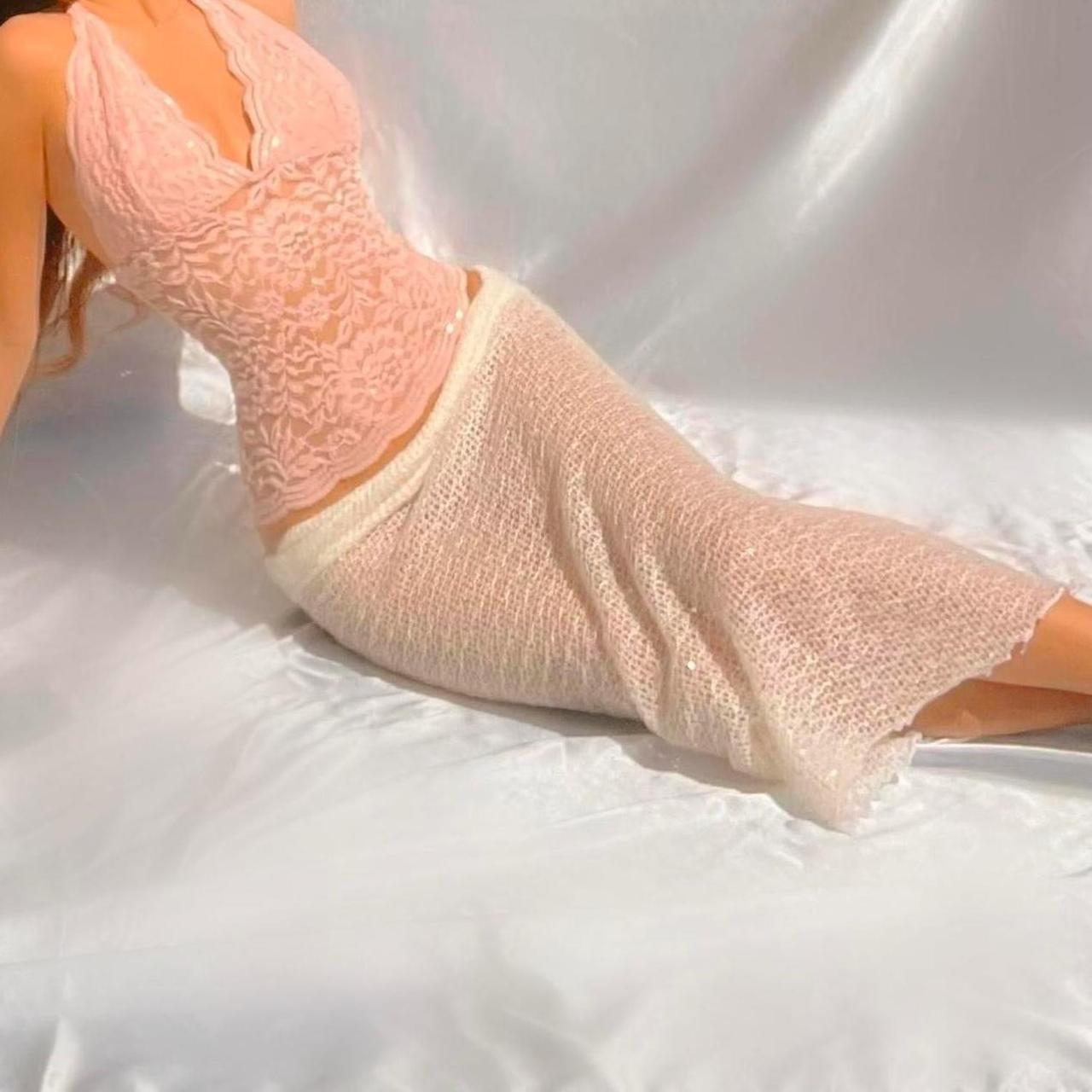 Handmade Baby Pink Sparkly Lace Mermaid Halter Top