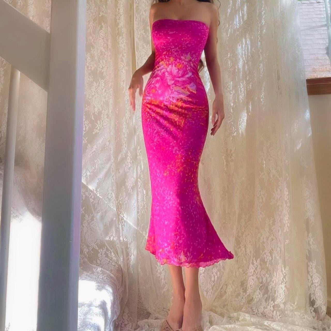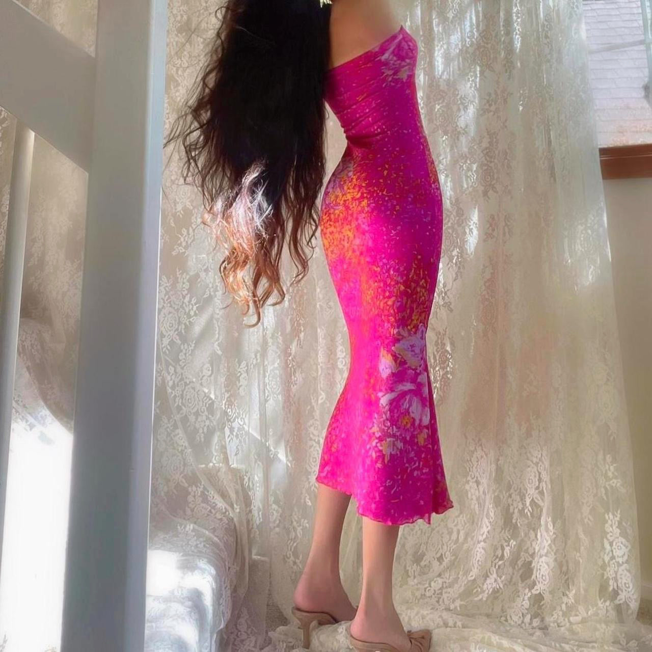 Made with a high-quality deadstock stretch mesh knit and a super soft rayon/lycra jersey lining underneath. Please note that the floral print may vary on each dress.