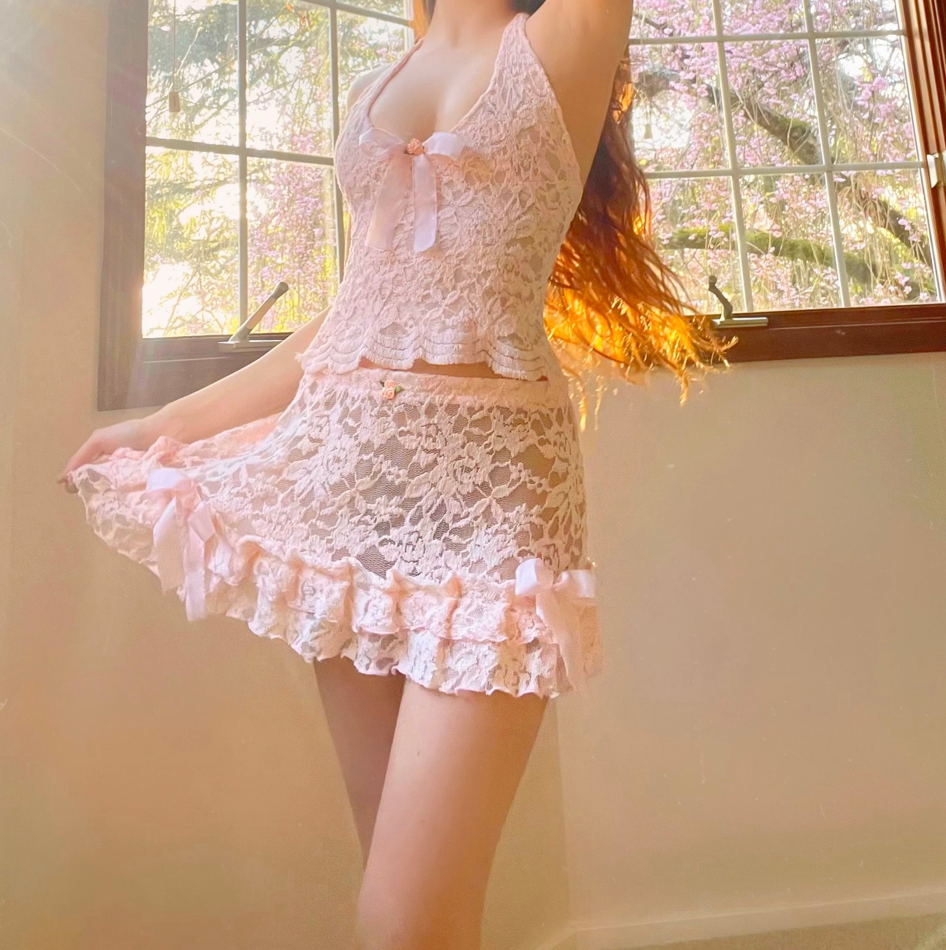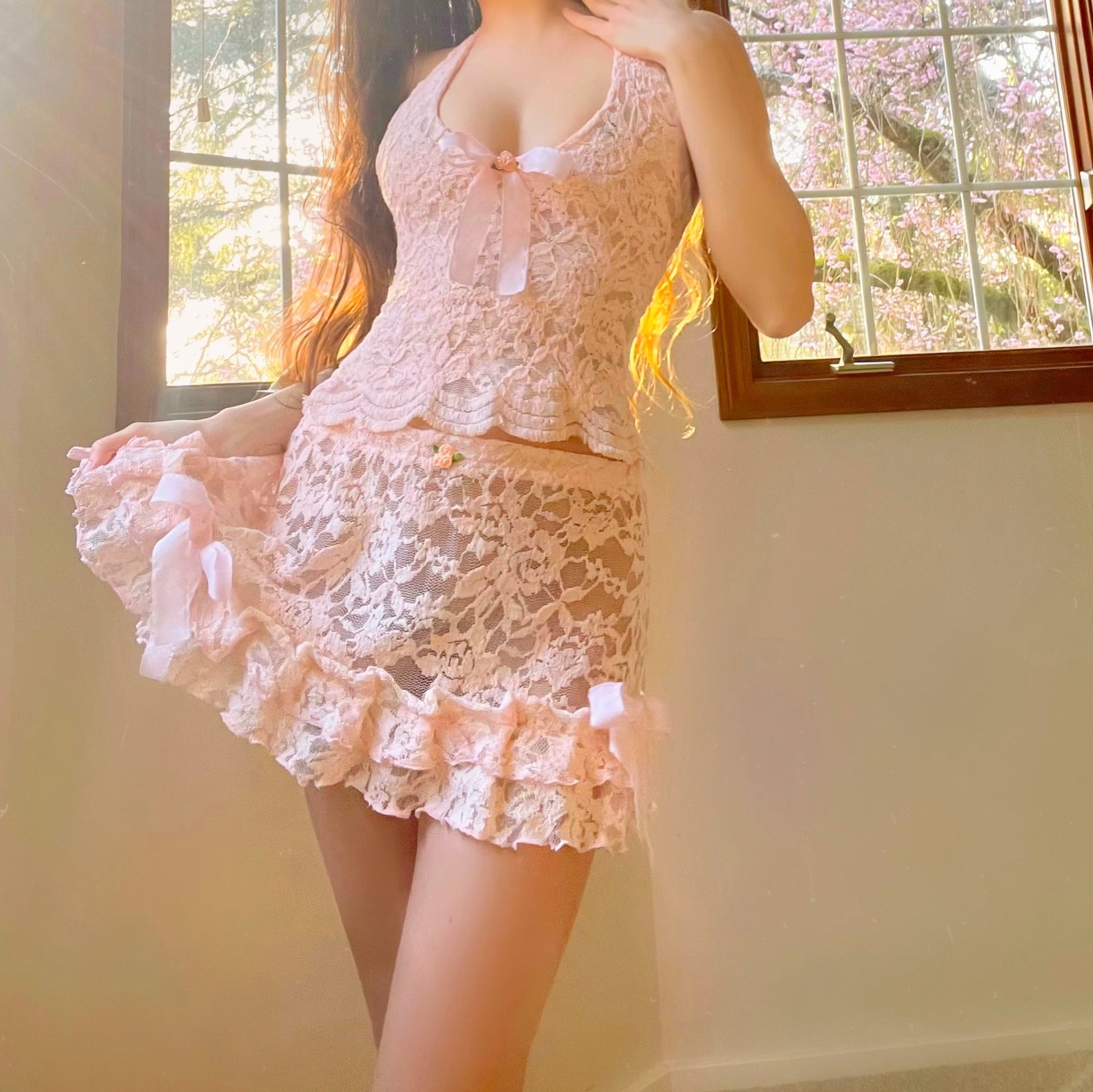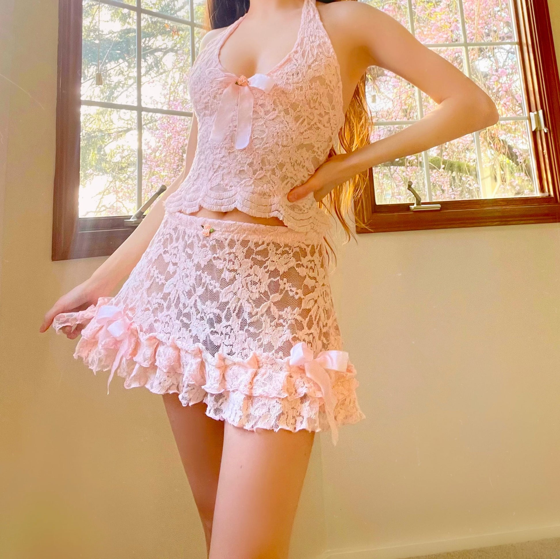 - Comes with an adjustable halter top and a ruffle mini skirt.