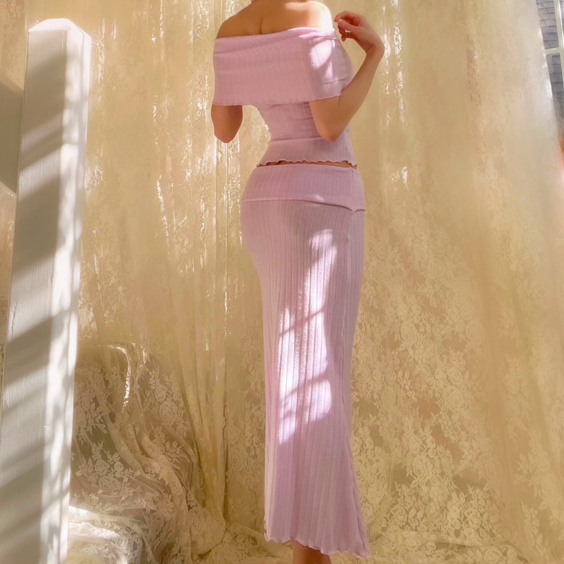 Lilac Baby Off the Shoulder Top + Midi Skirt Matching Set
