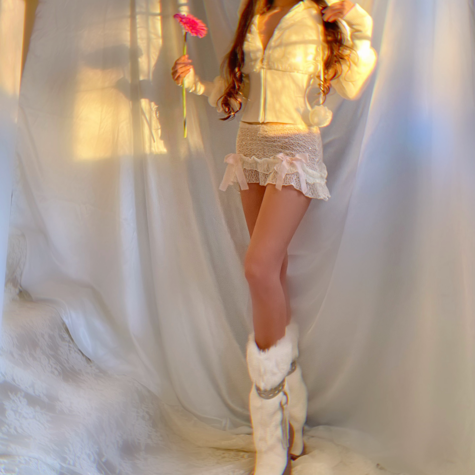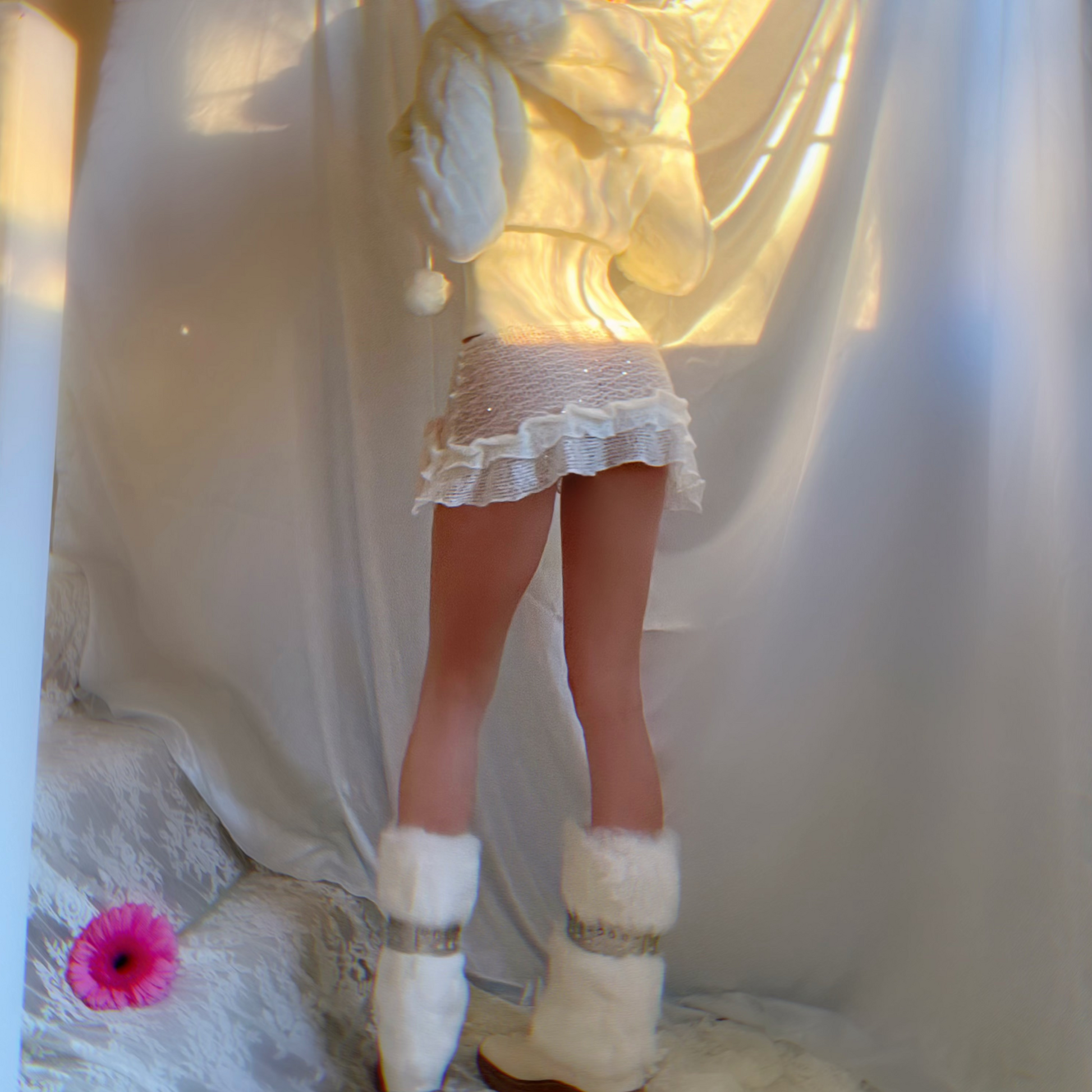 Handcrafted Snow Angel Sparkly Crochet Ruffle Ultra Mini Lingerie Skirt 🤍❄️🪽