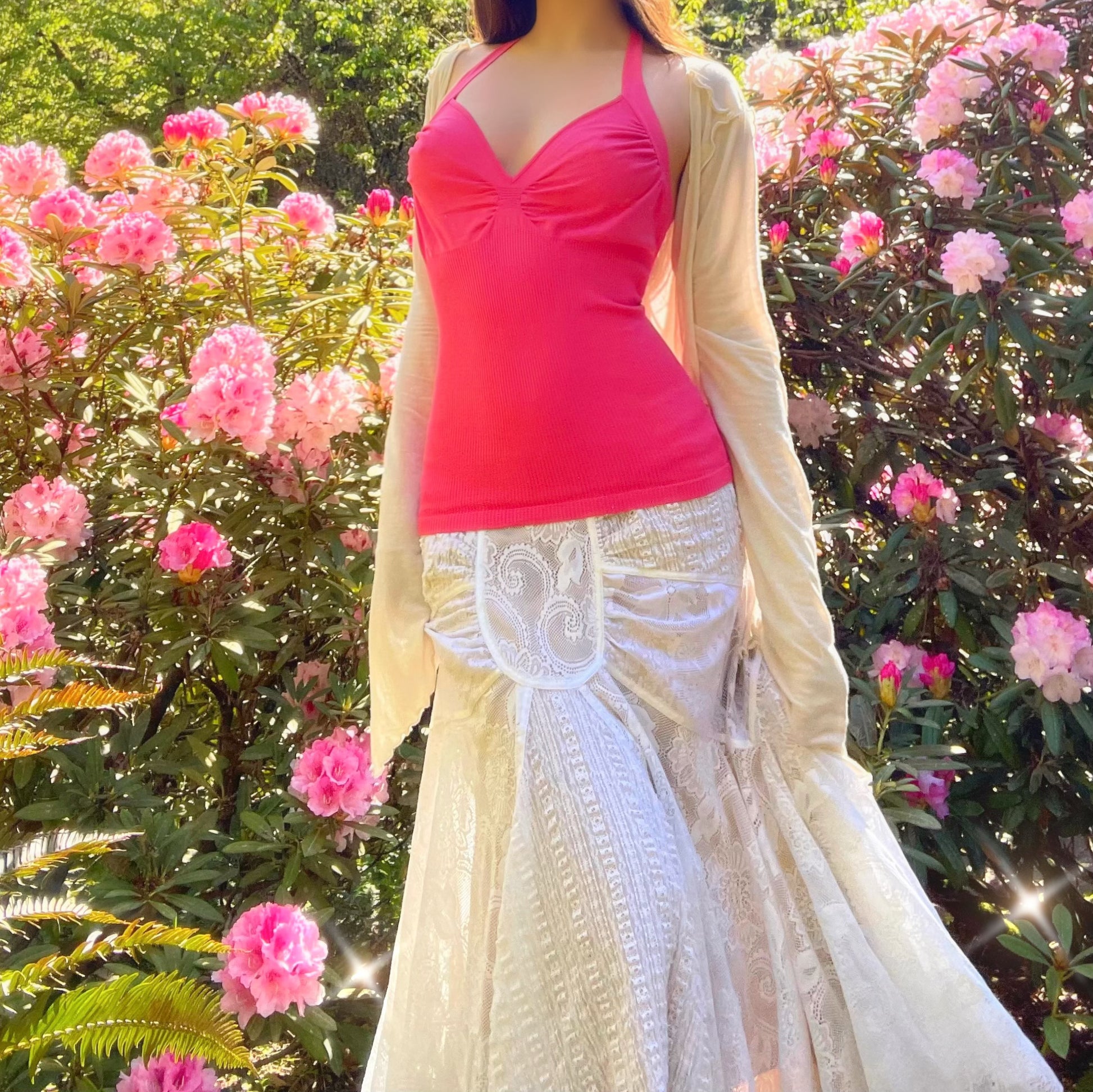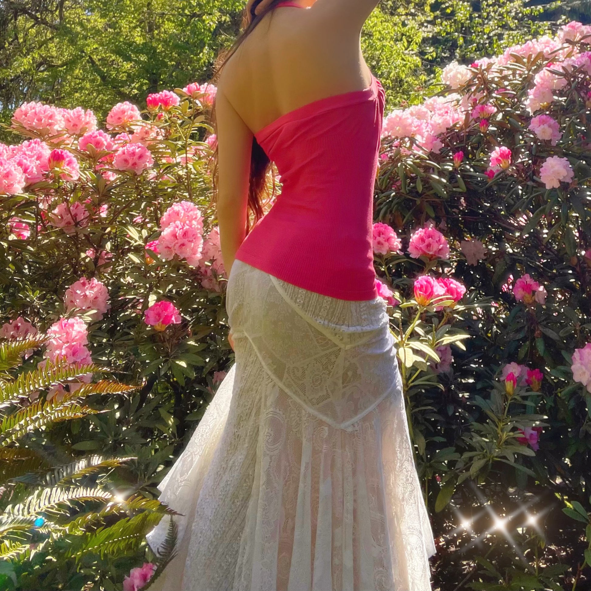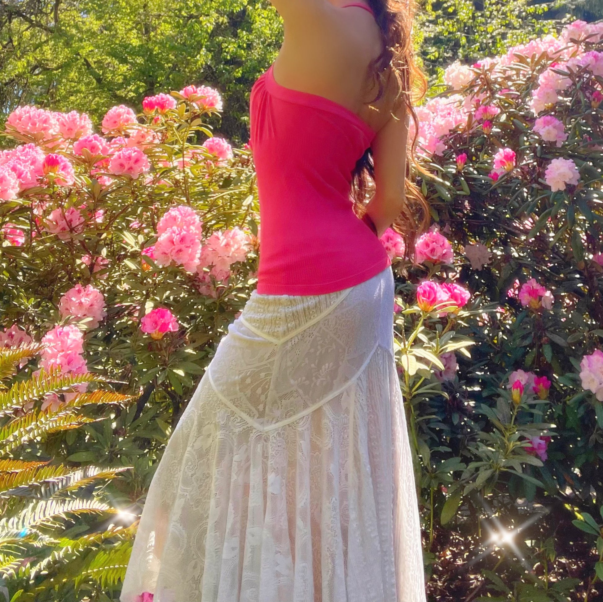 - Size M but runs small! Fits more like a size S. Waist measures out to 13in laying flat.