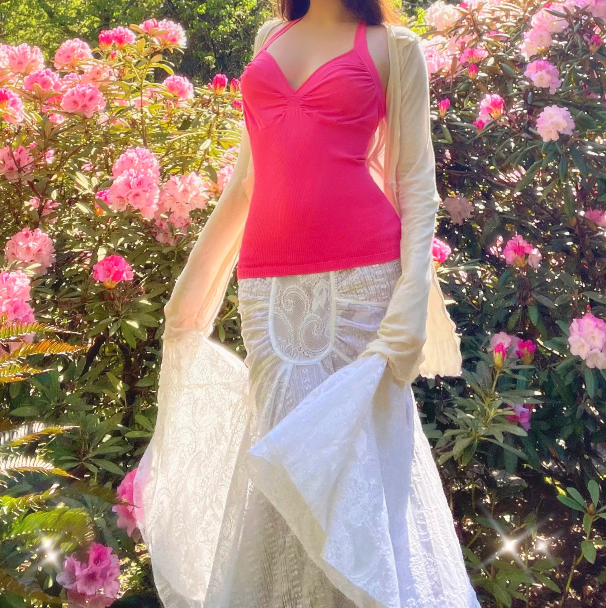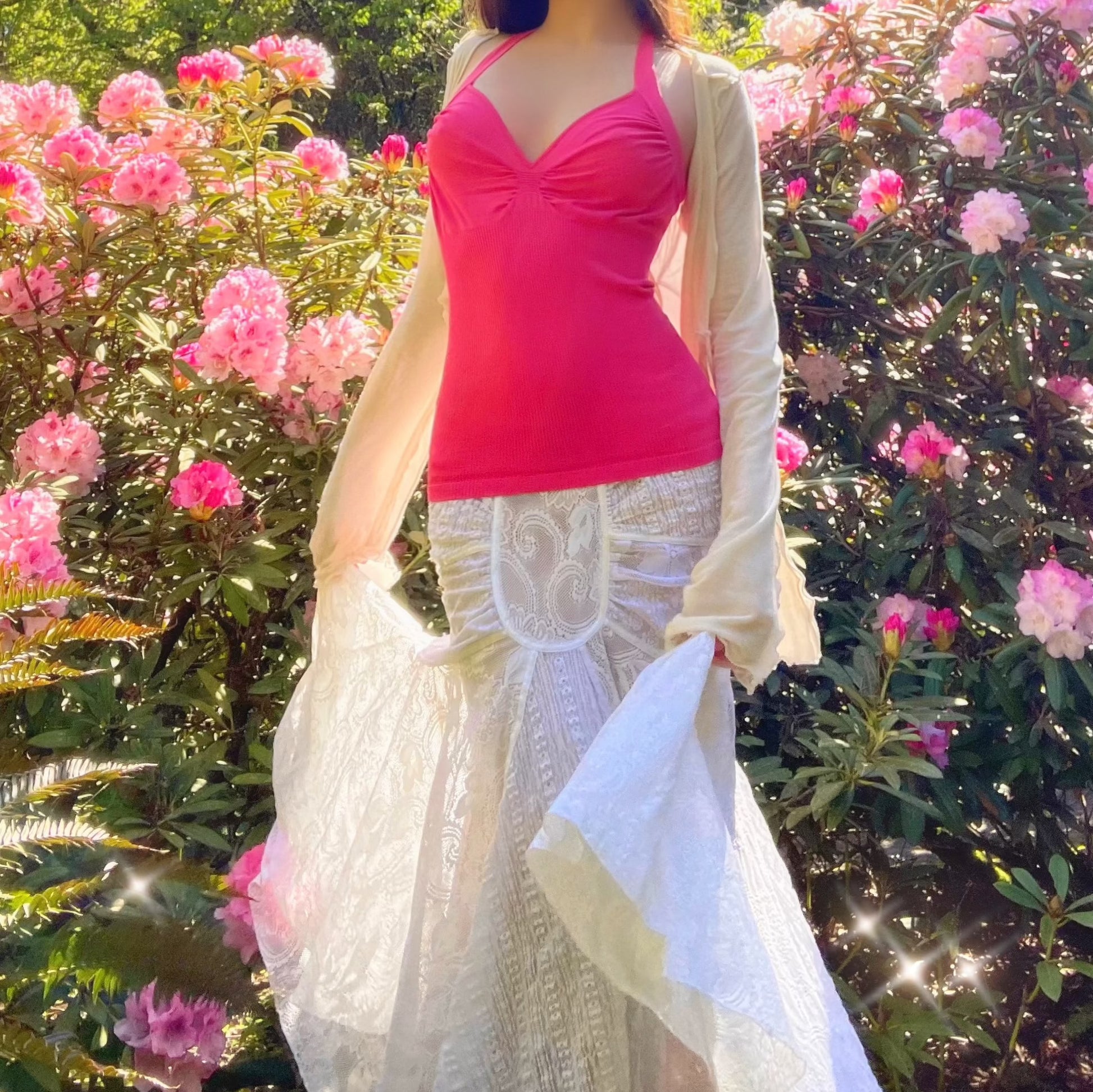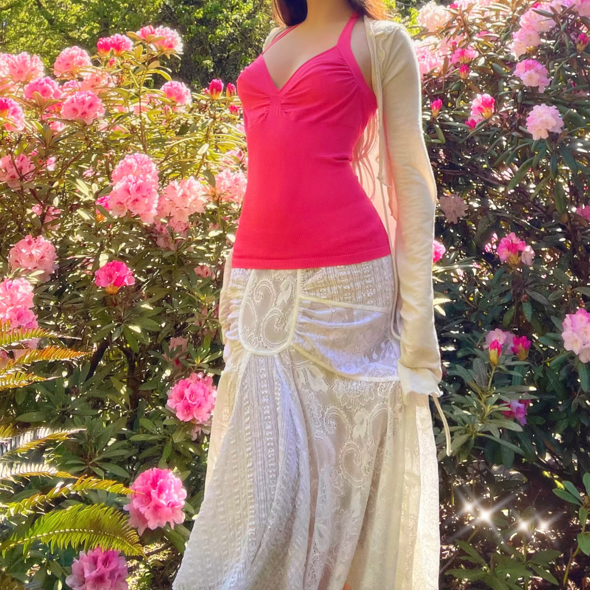 - Size M but runs small! Fits more like a size S. Waist measures out to 13in laying flat.
