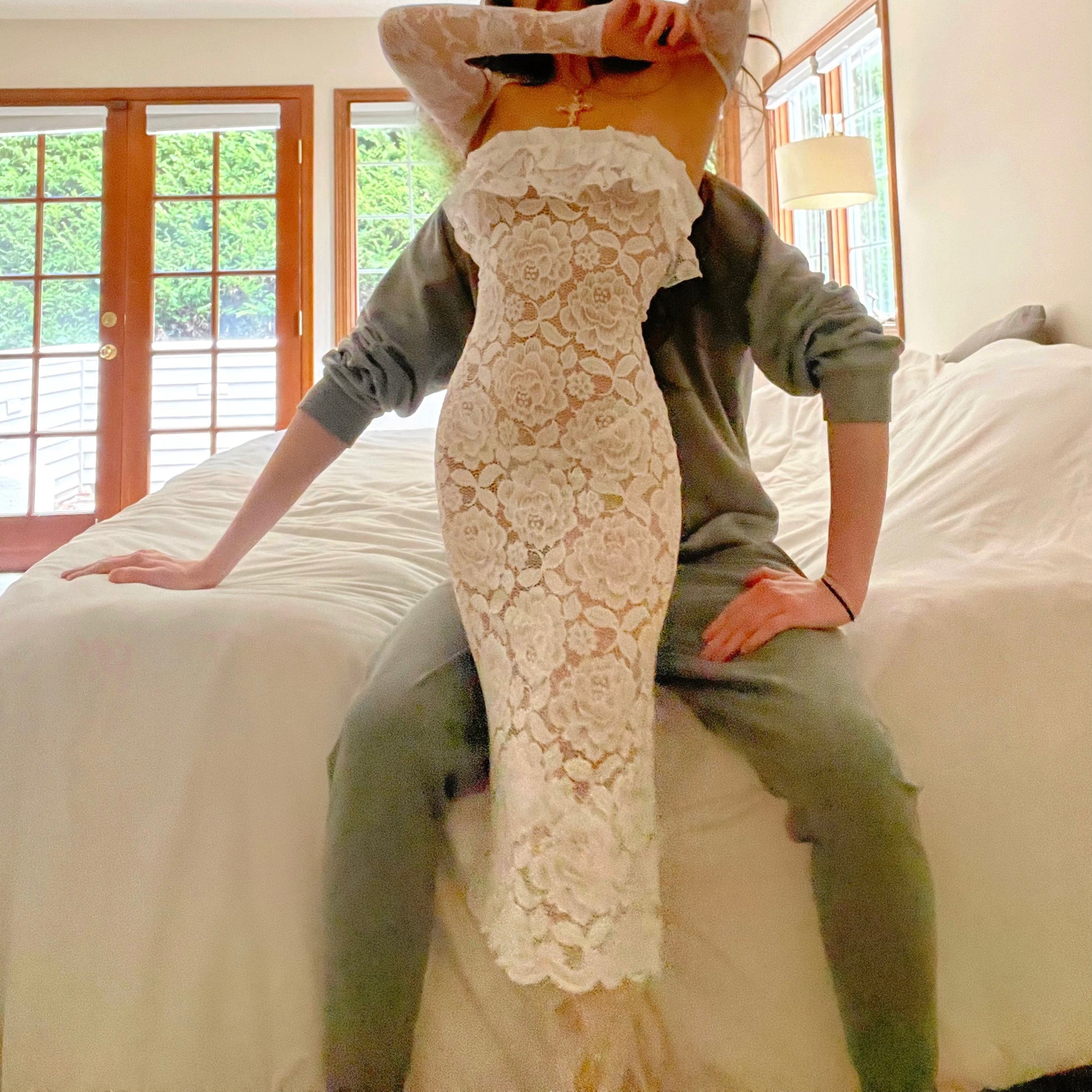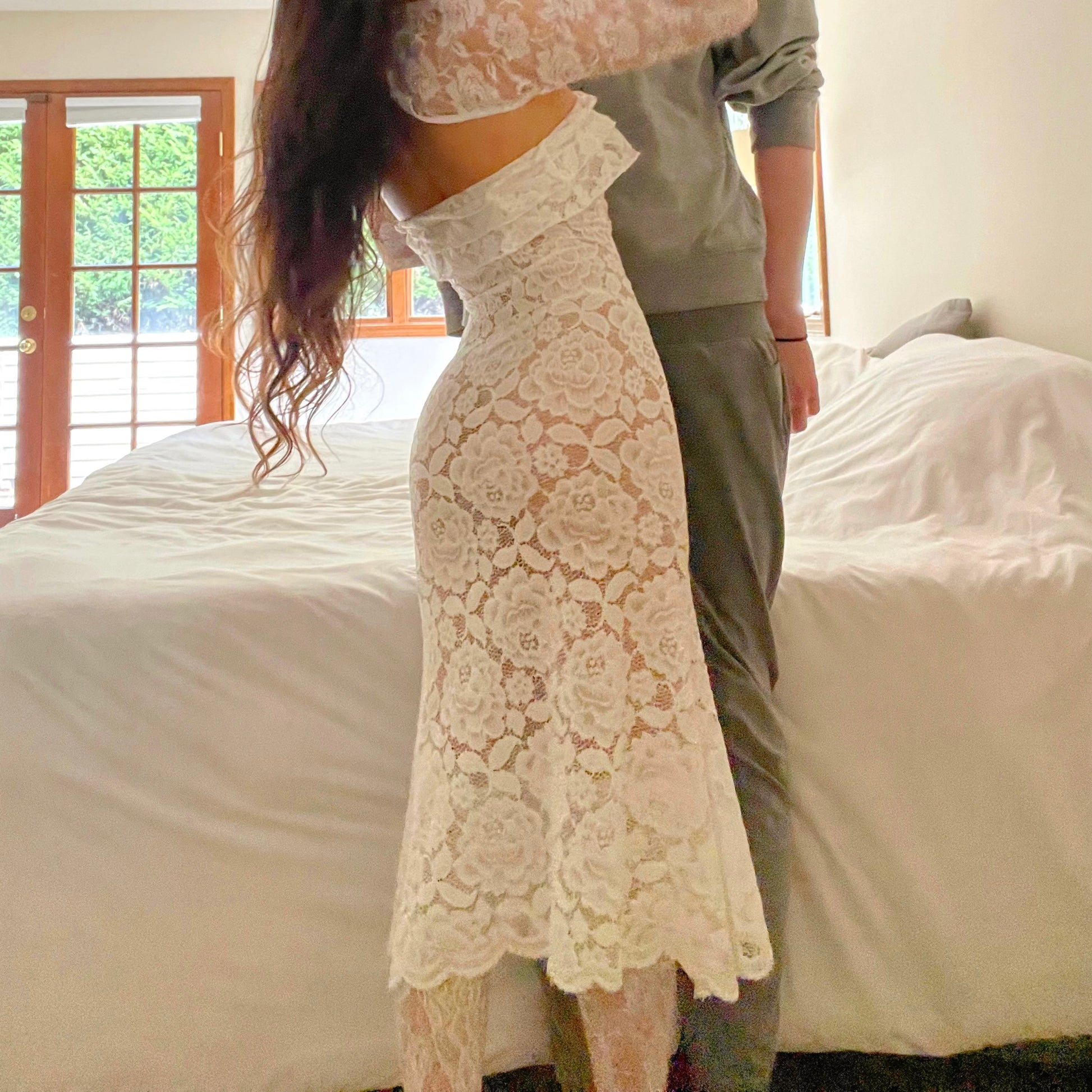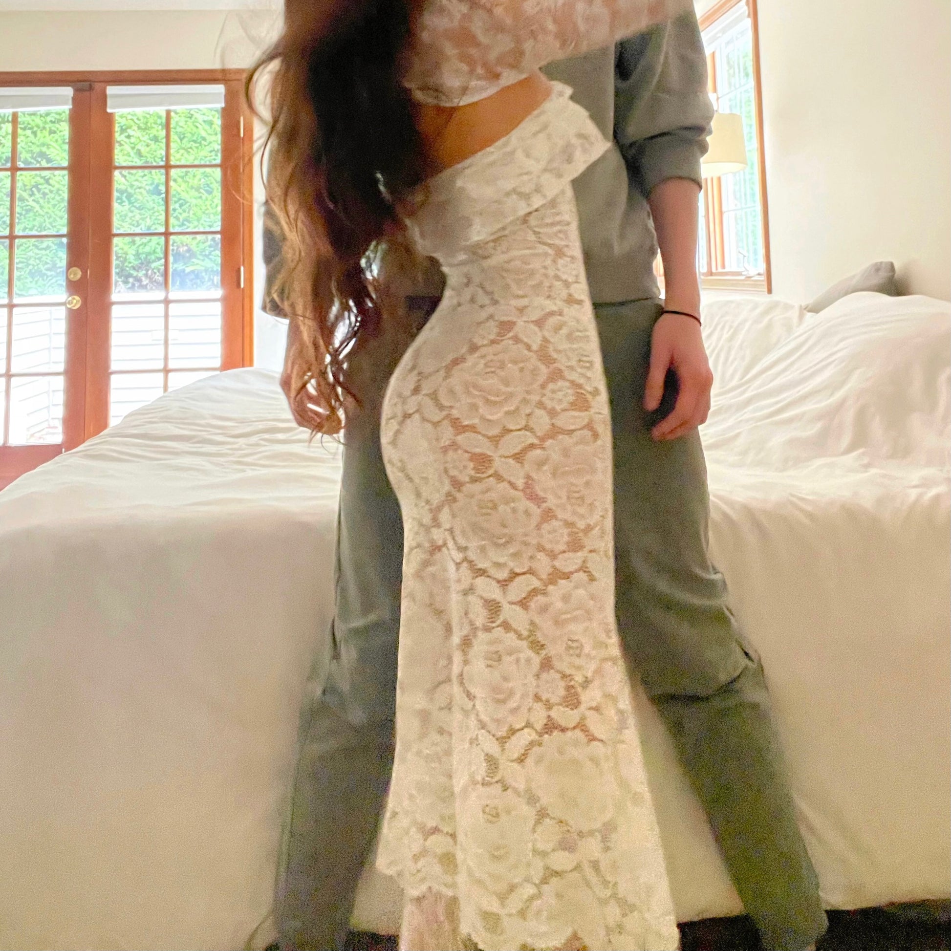 - As a reference, model is 5'7" and it went down to the mid-calf.Β