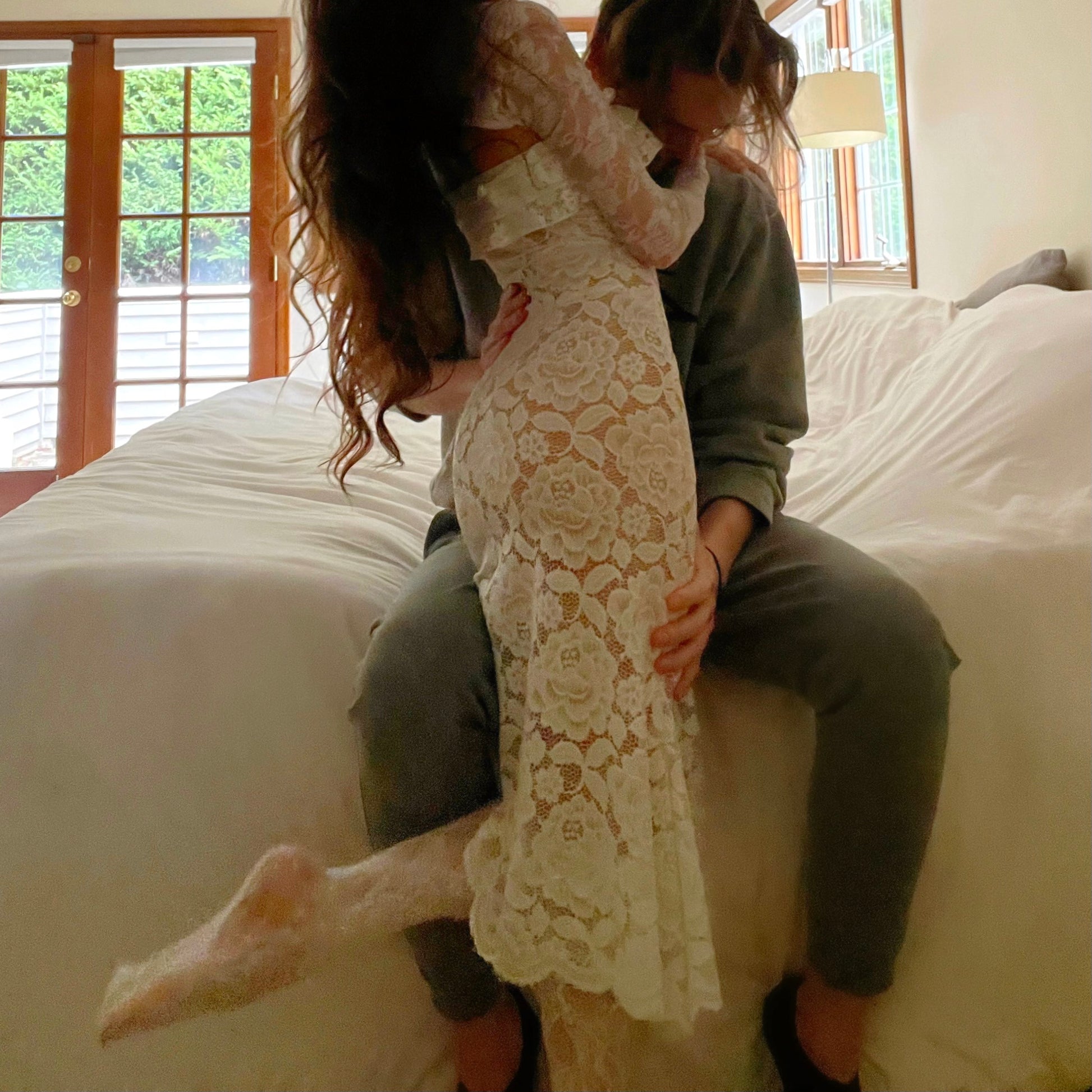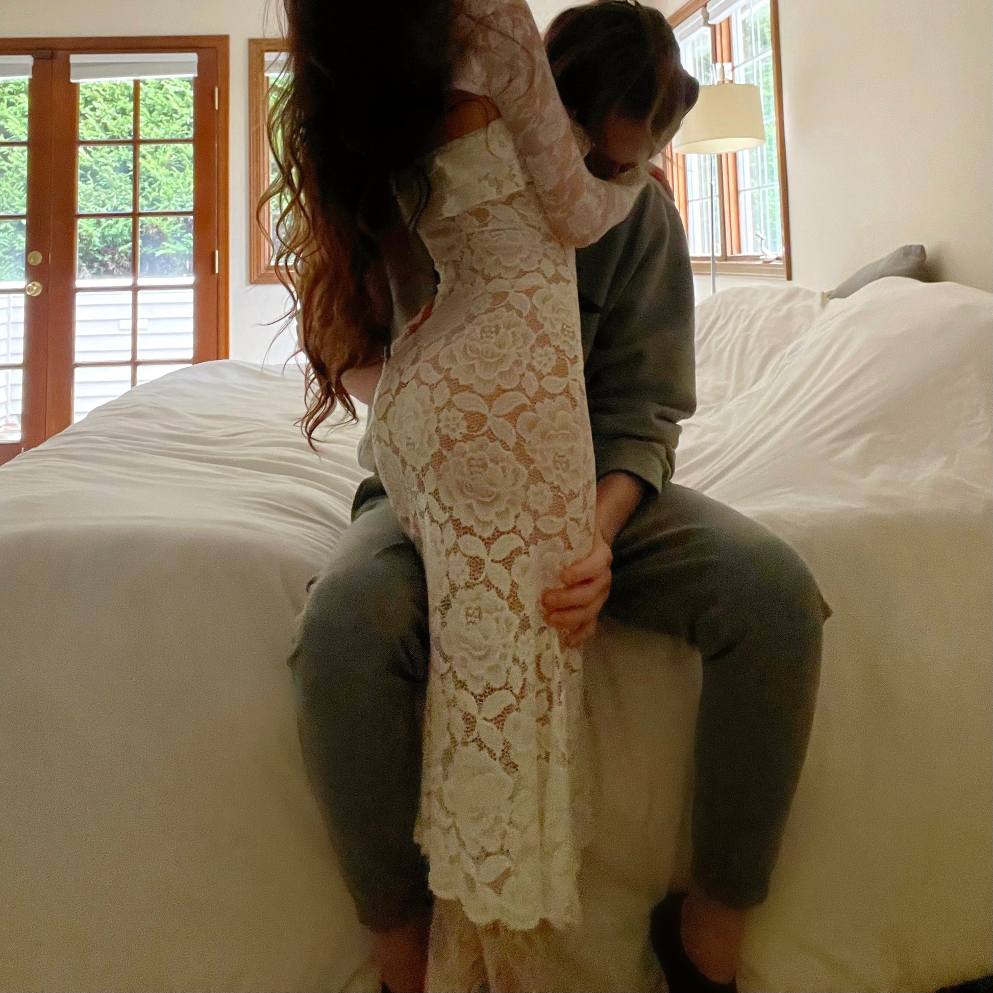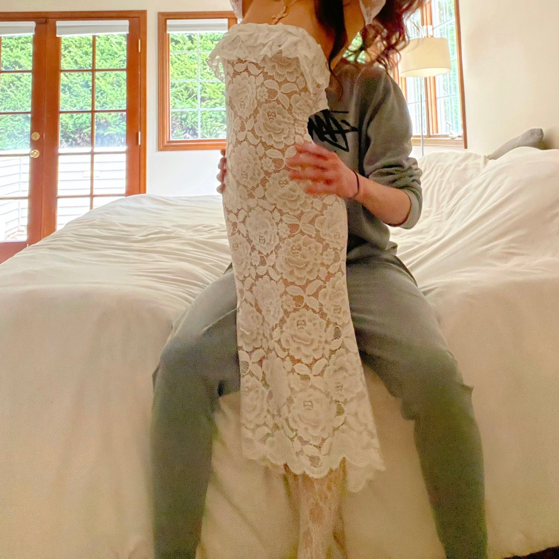 - As a reference, model is 5'7" and it went down to the mid-calf.Β